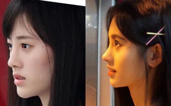 羊随便从网上找了个隆鼻对比图,术后是不是就有点接近赵丽颖的鼻子?