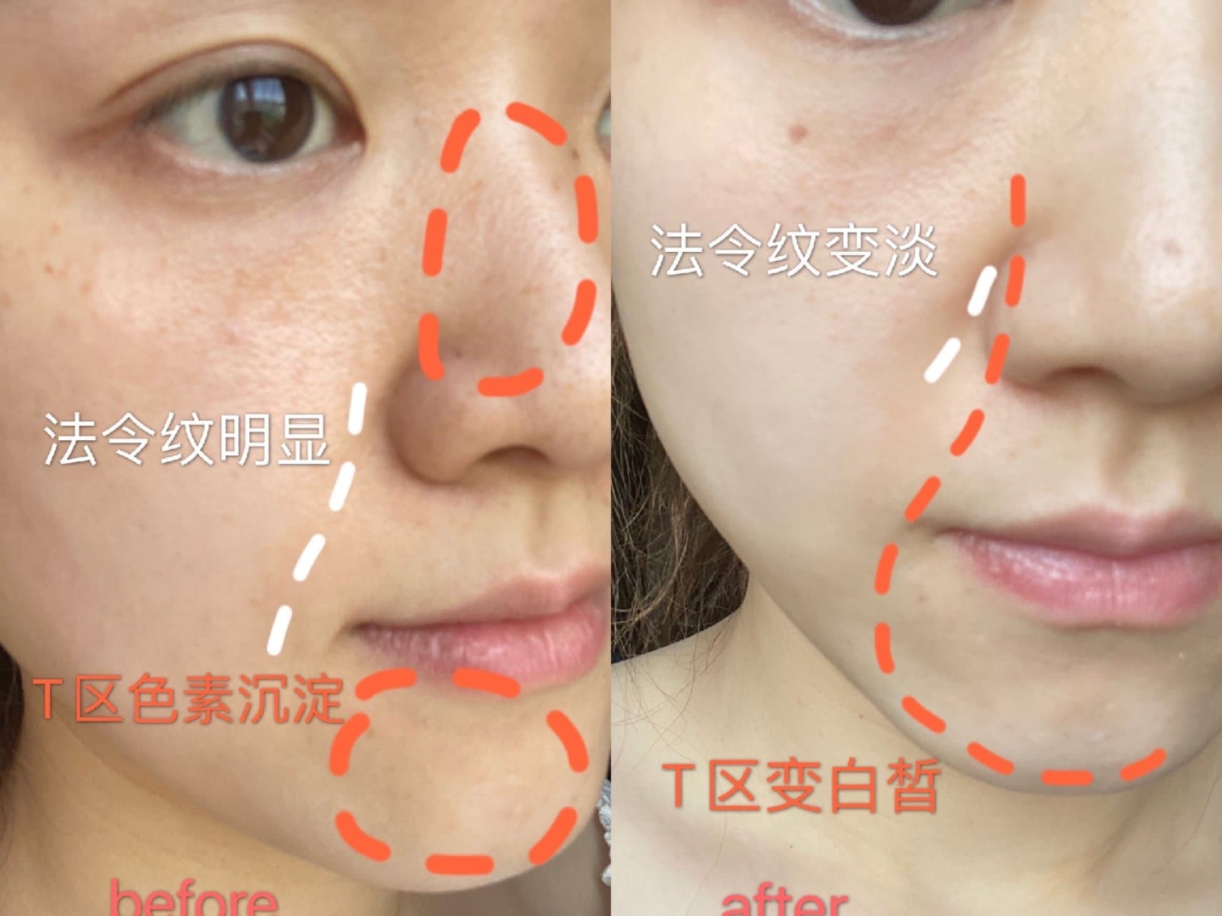 这半个多月下来,我是看到自己肌肤的明显变化 1.T区的暗沉减轻了很多,2.两颊线条也更紧致,整个肌肤有提升的感觉,3.而且摸着也更加细腻⭐⭐