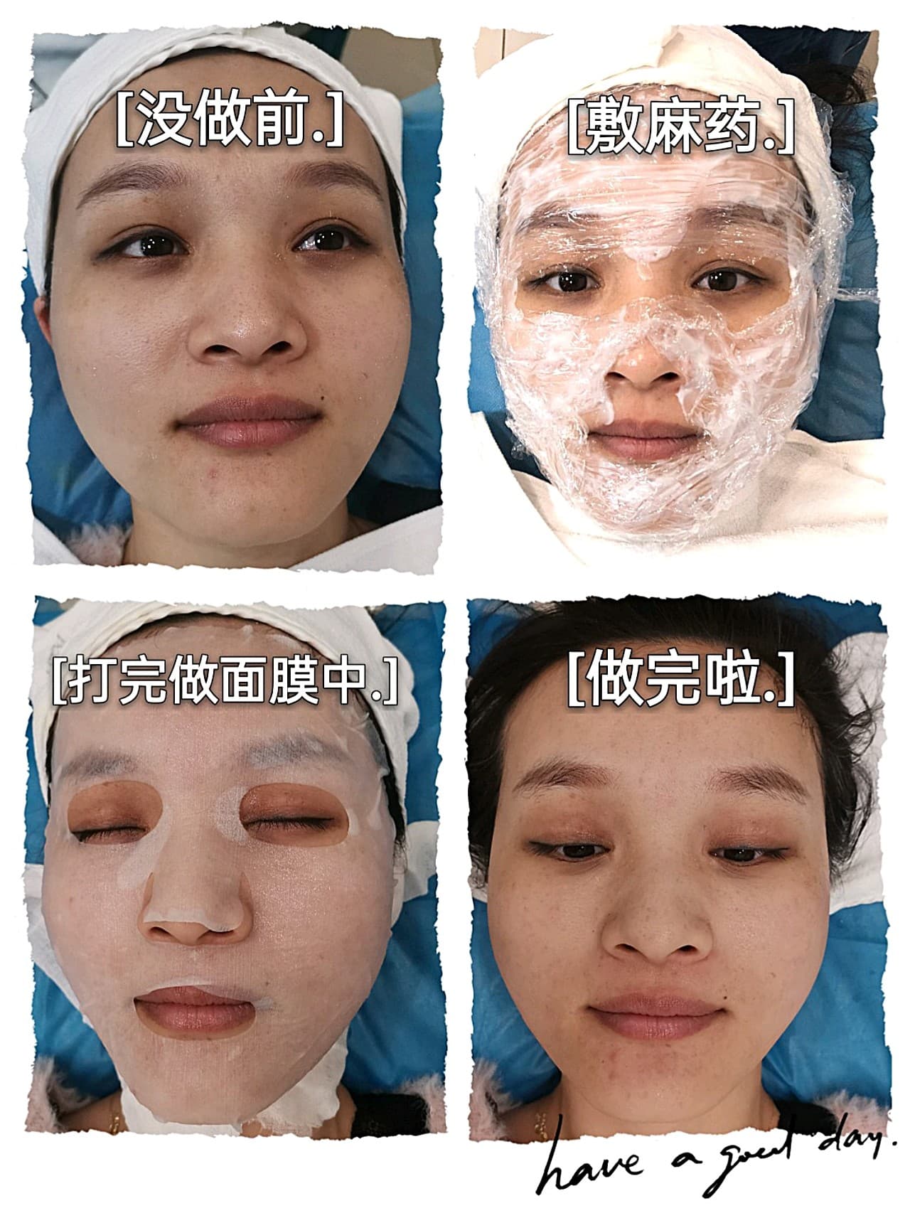 效果:立竿见影就是不擦护肤品也没觉得干,品牌方送的面膜可以,总共3片,带了2片回家敷,本来刚打完是有红点的小皮疹,敷完没针孔了,至少效果还需时间来见证啦。
