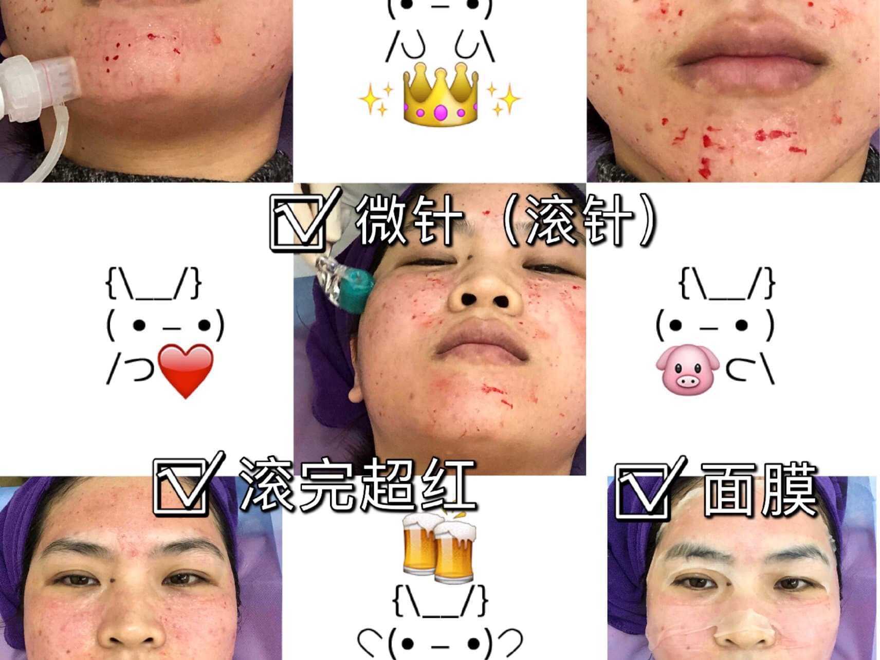 🌟然后开始敷麻药,敷了20多分钟,我的脸对麻药过敏了,😱生理盐水敷了20分钟褪红后,又改敷30分钟麻药面膜,就这样……我敷了一个多小时的麻药……😑