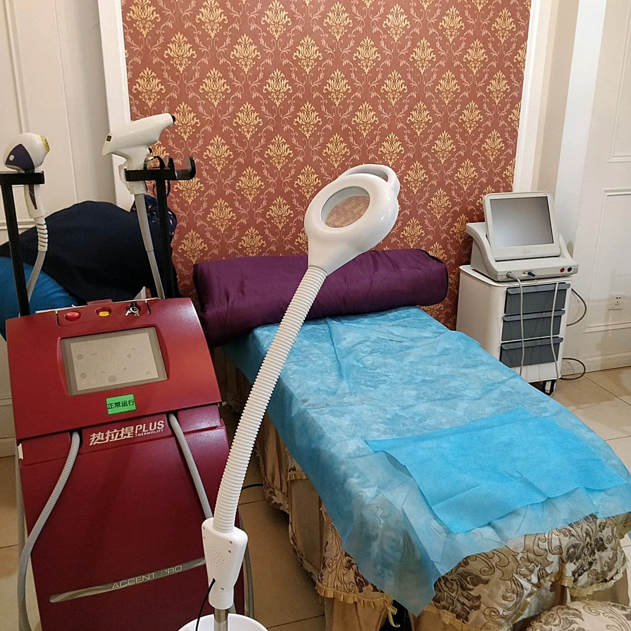 🌸到了治疗室!用的是正版热拉提PLUS 的机器!预热了一忽儿医生就开始给我操作了!体验的是滑动 定点,首先滑动时候抹的好像是油,热乎乎的很舒服。定点的话医生一直很耐心的问感觉是温温的还是热热的,让我感觉烫了一定要说。