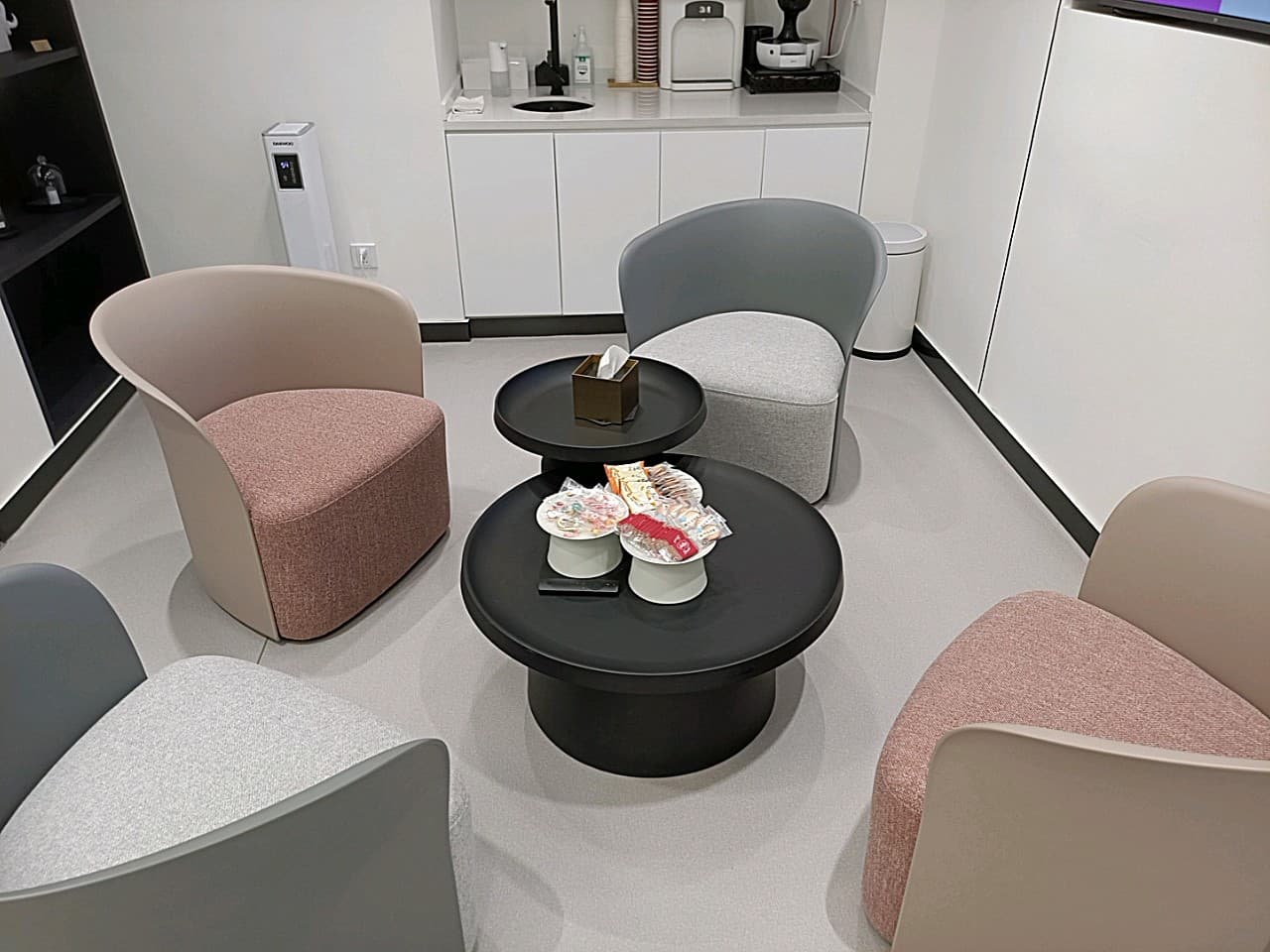 ❤️接待❤️门面装修干净整洁,首先进去的时候会有一个测体温,然后去前台报道,报道以后会先去休息区等待叫名字。