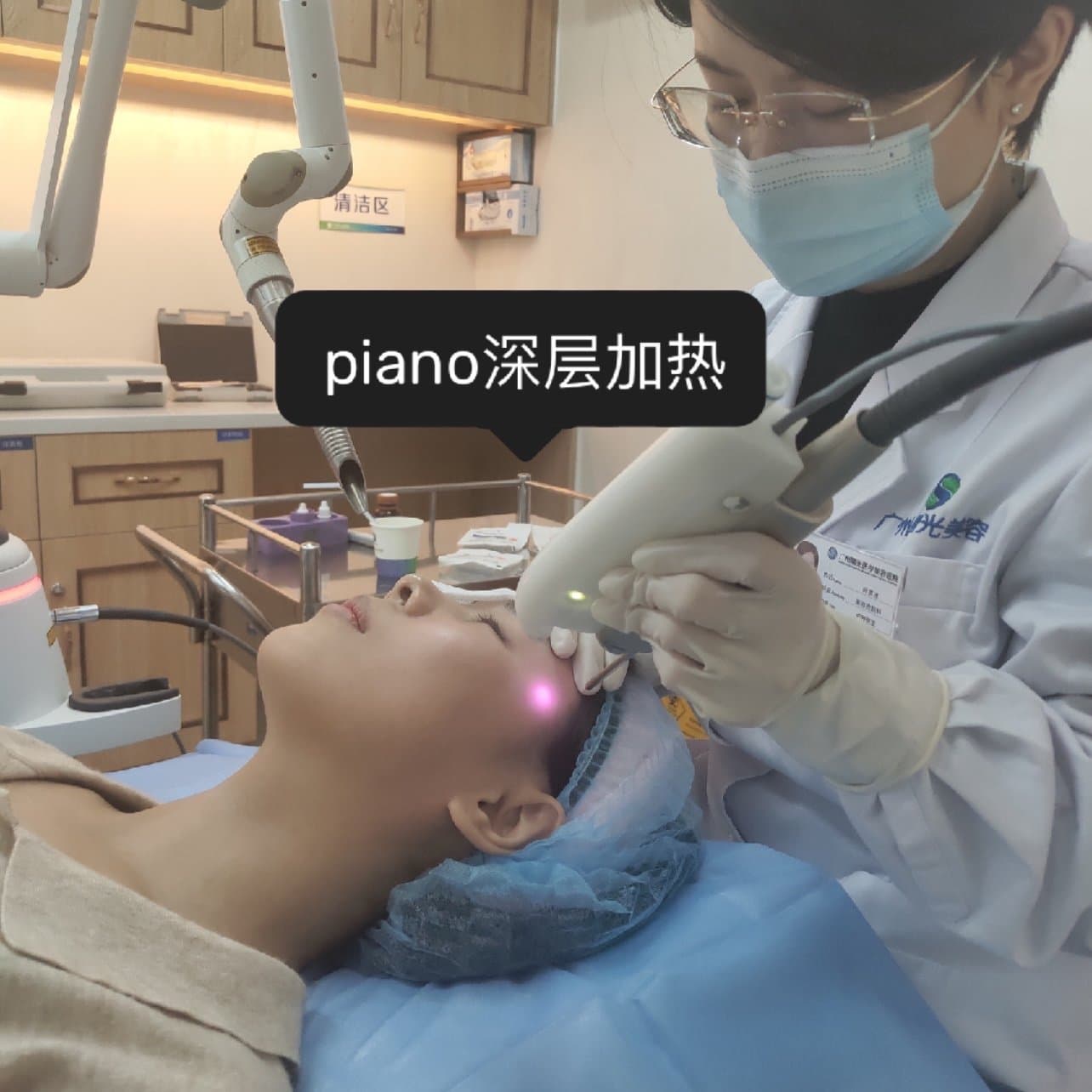 这是利用超长脉宽纳米激光进行深层加热,溶解多余的脂肪,达到收紧提拉的效果。医生说我皮肤比较耐受,我只感觉到脸温温热热的,还蛮舒服的。