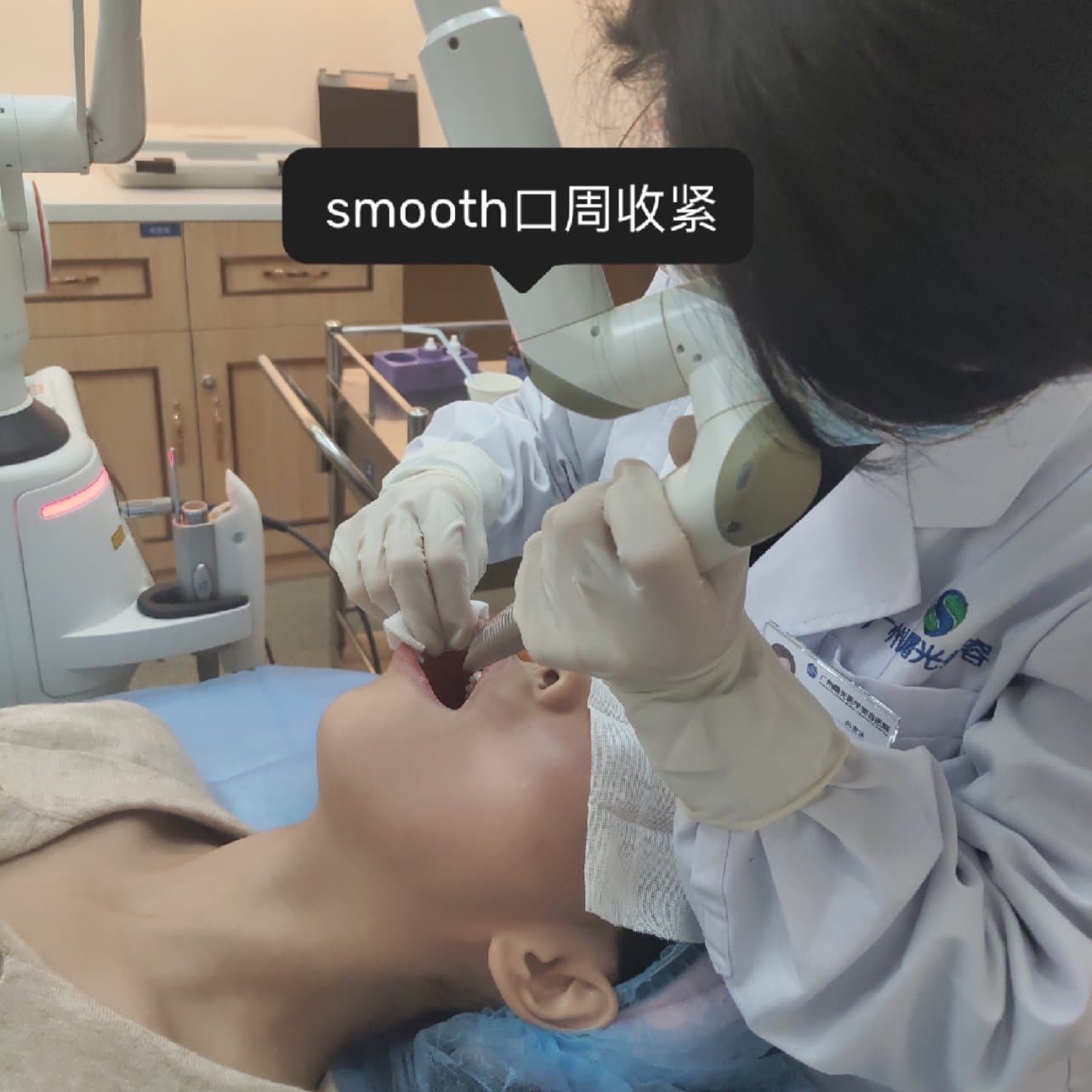 4D独有的smooth模式,该模式能迅速收紧松弛的皮肤,提拉轮廓,降低法令纹和木偶纹,采用纳米激光叠加光热作用,作用于筋膜层附近。过程中只感觉到口腔有点发热,没有痛感,但是口会干,医生小姐姐会时不时的给我用吸管喝水。做完后用舌头就能明显的感受到口腔内有收紧的效果。
