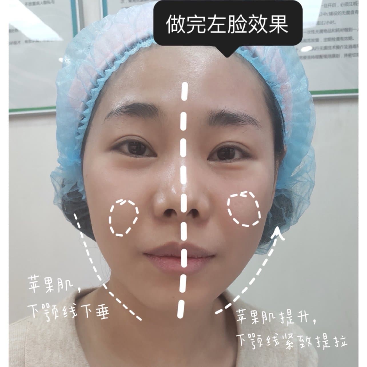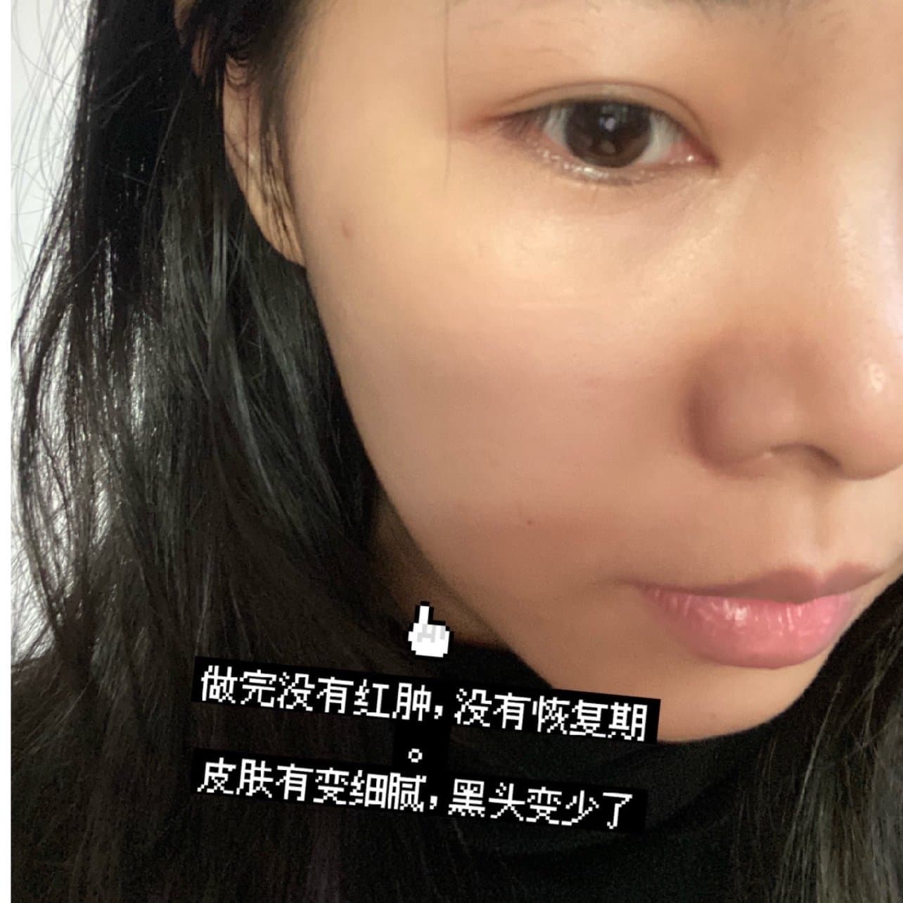 整个过程大概50分钟,过程中并没有痛感,到后面我差点就睡着了,而且术后没有恢复期,当天就可以正常护肤了,医生建议术后多敷面膜来补充皮肤的水分。刚做完后苹果肌明显提升,下颚线也收紧了,因为我鼻基底凹陷所以法令纹的改善不会很明显,7天后我再分享一下状态。