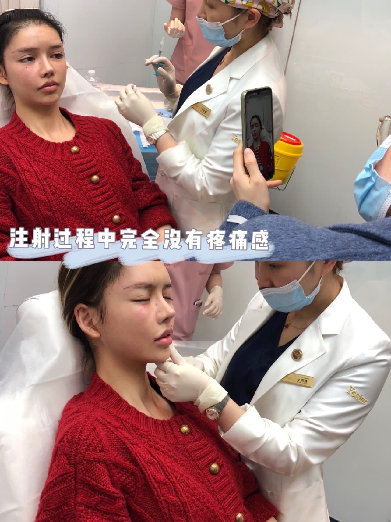 🙈拍完术前照之后,就可以注射啦!说实话我有点紧张的,因为在之前注射玻尿酸的时候疼痛感还是很强的。
