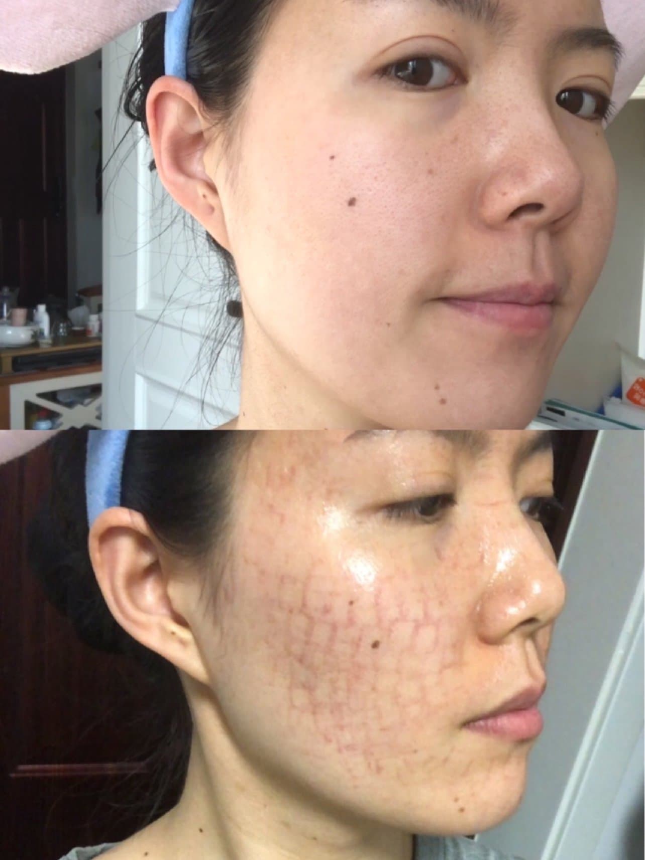 🖼刚做完黄金微针的时候,我的脸特红,反应很明显。基本上是不可以出门的。但大概10天后我的红印子就消失了。我就认真观察一下毛孔的收缩效果。