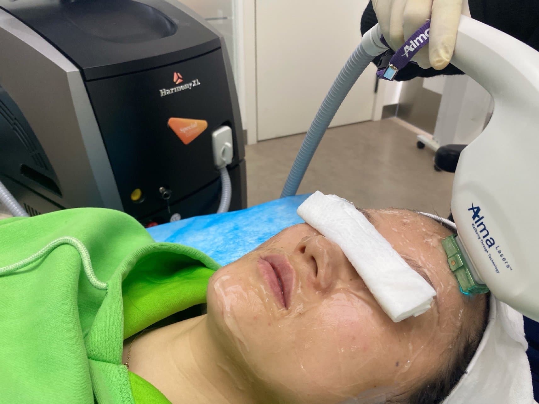先涂了凝胶,第一个模式主打美白嫩肤,滑动操作,几乎无痛感,非常舒服,即时效果也很明显,要白一个度,医生手法也是真的好,一边做一边讲解,时不时就询问会不会痛,很贴心。