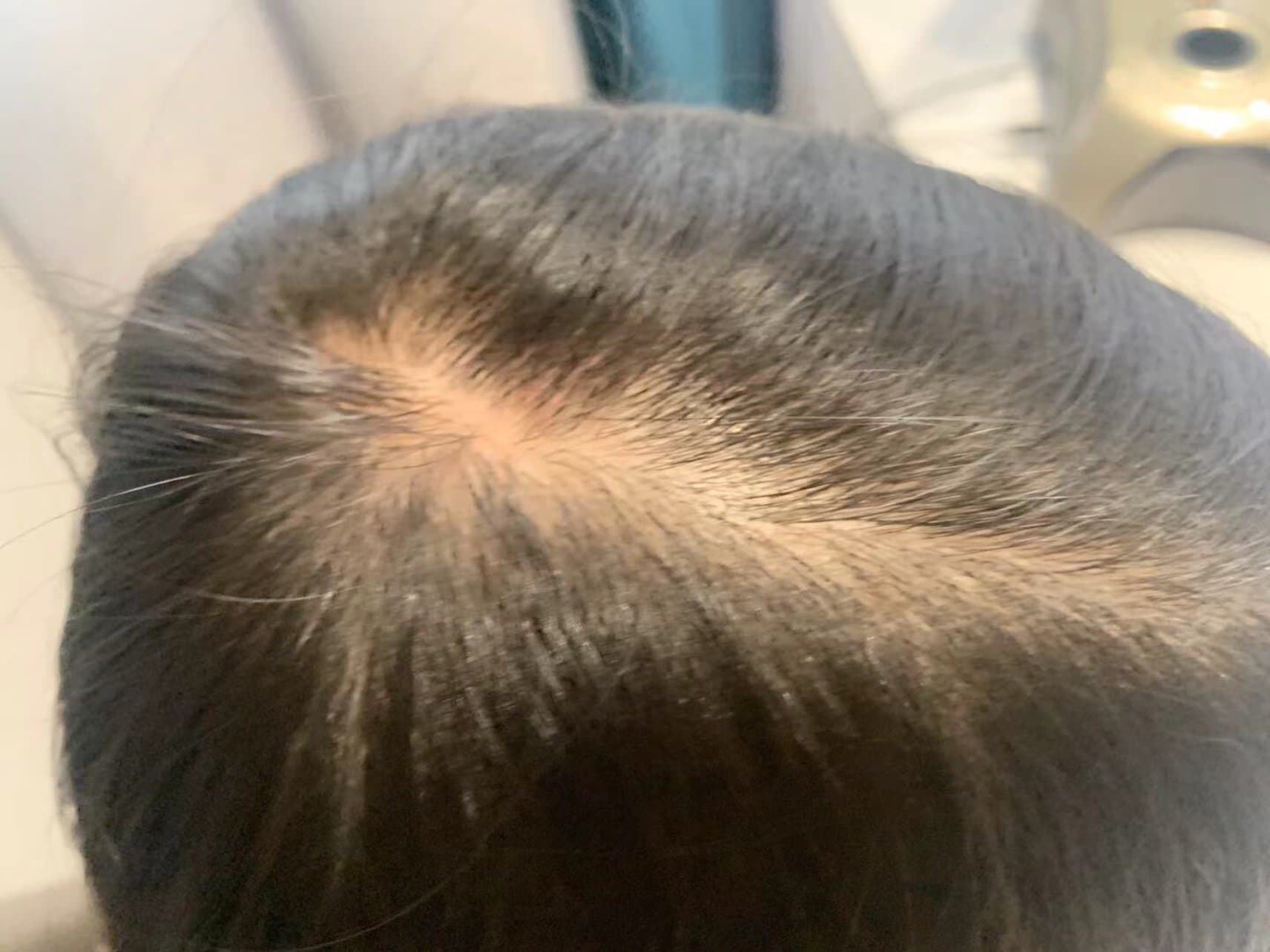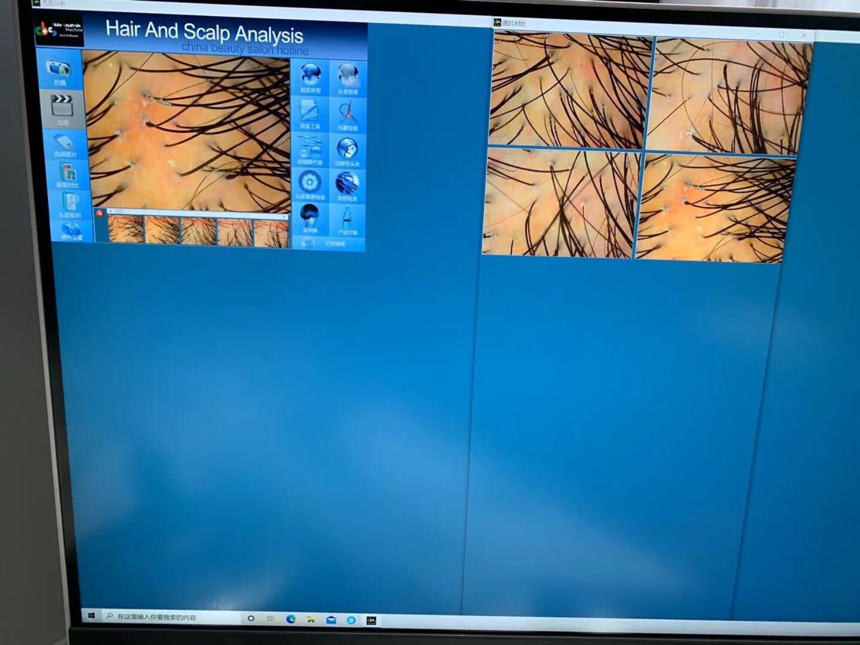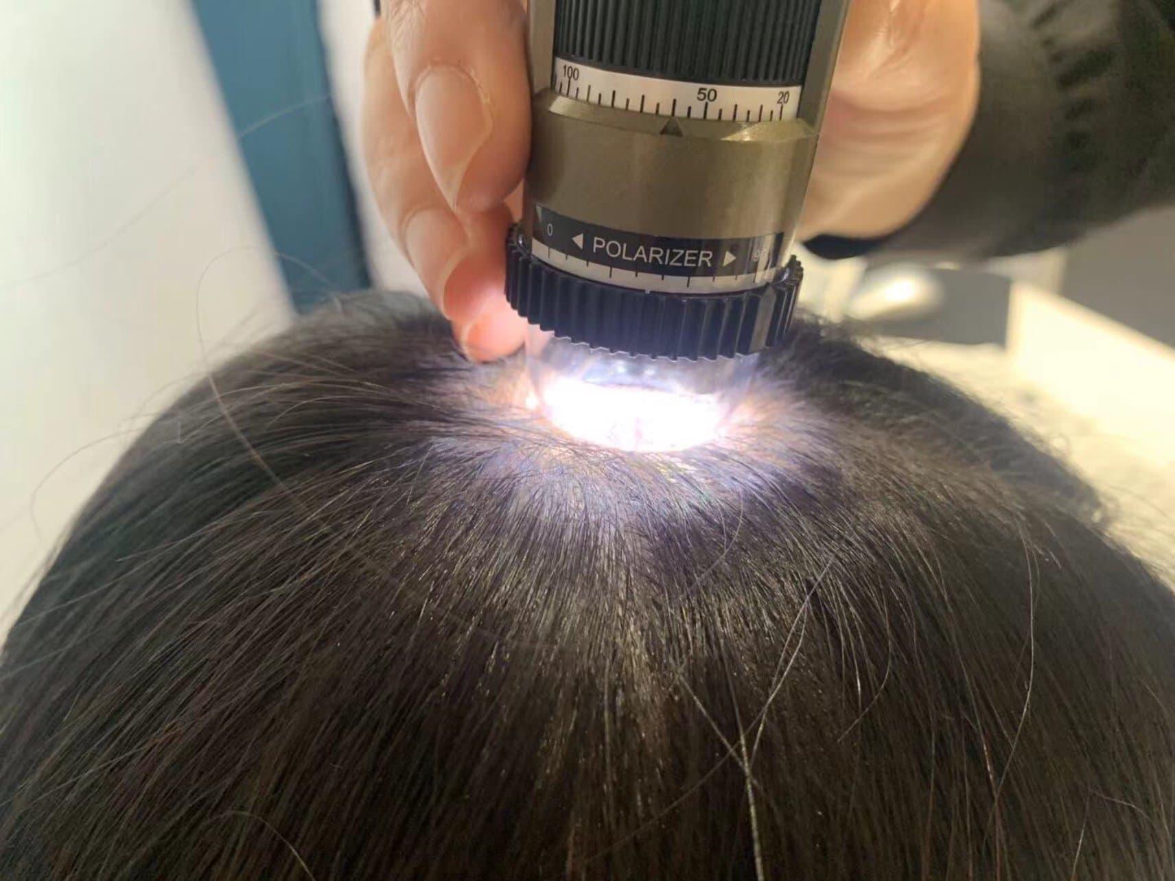 开始先头皮检测,我的发量遗传性的稀少,我的妹妹头发更少。特别是我的头发缝,头发越来越少了。还有有毛囊炎,可能是我平时不注意吧。