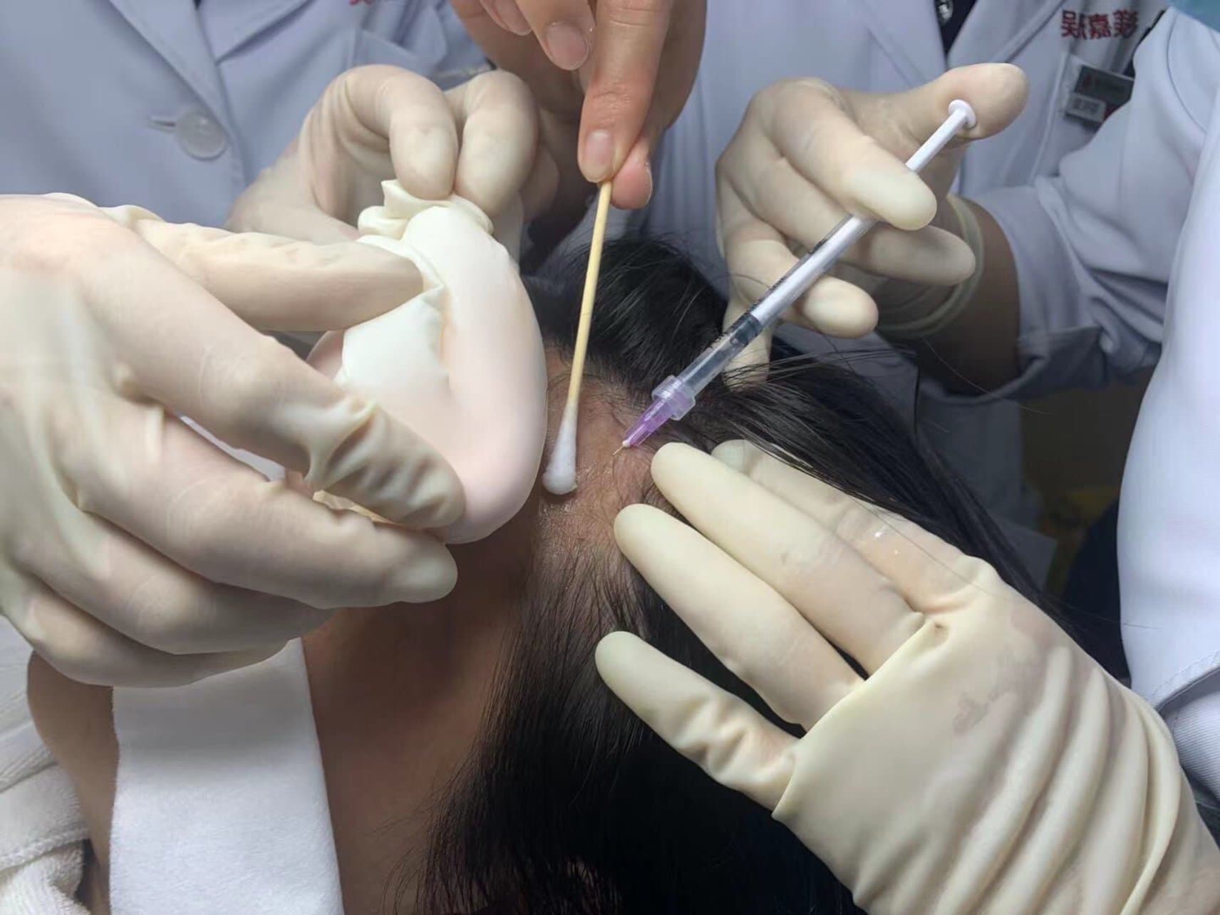做完头皮检测就清洁头皮了,医生很仔细地擦拭头皮,打手针手法也很温柔,全程都用安慰棒,缓解了紧张。医生不停的问我的感受,发缝加强了一下。也不疼,也是打得挺认真的,然后就照红光了,流程很齐全,值得体验,期待下次的效果。