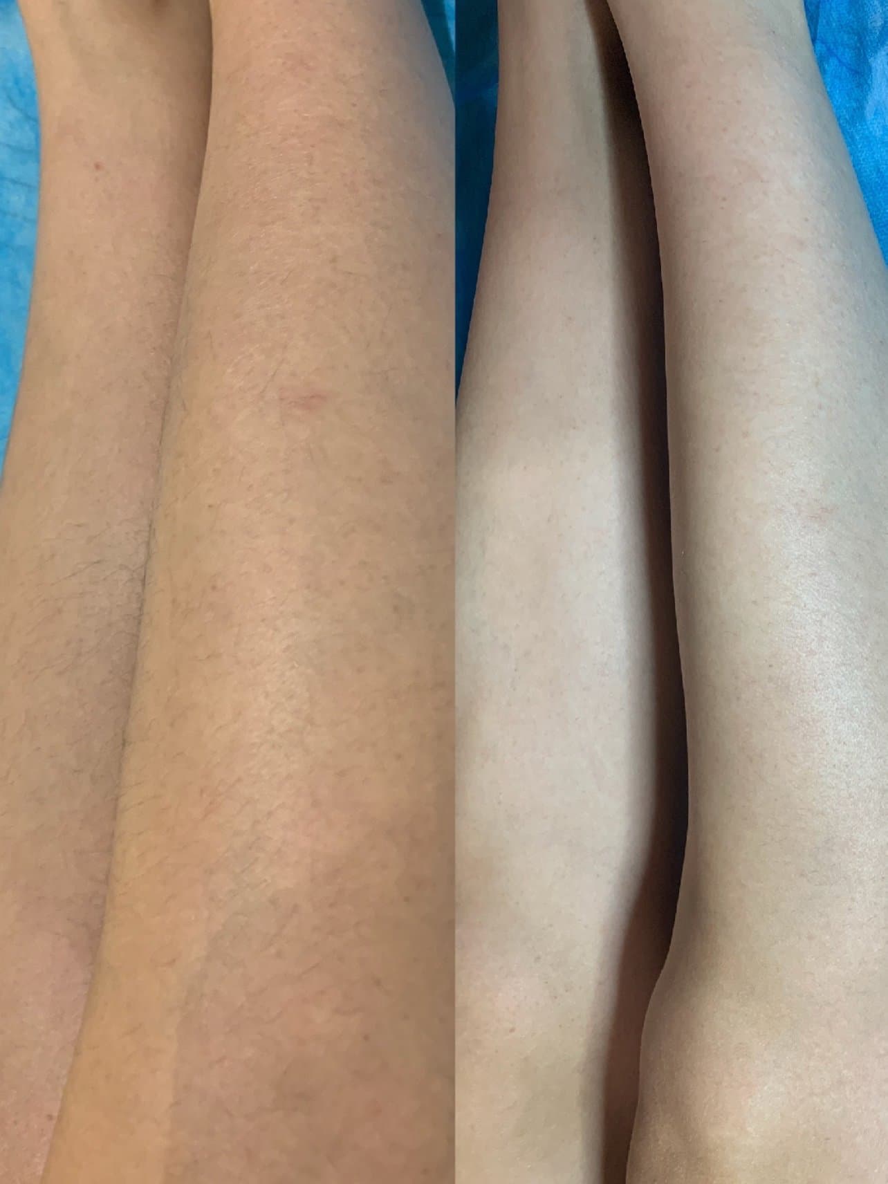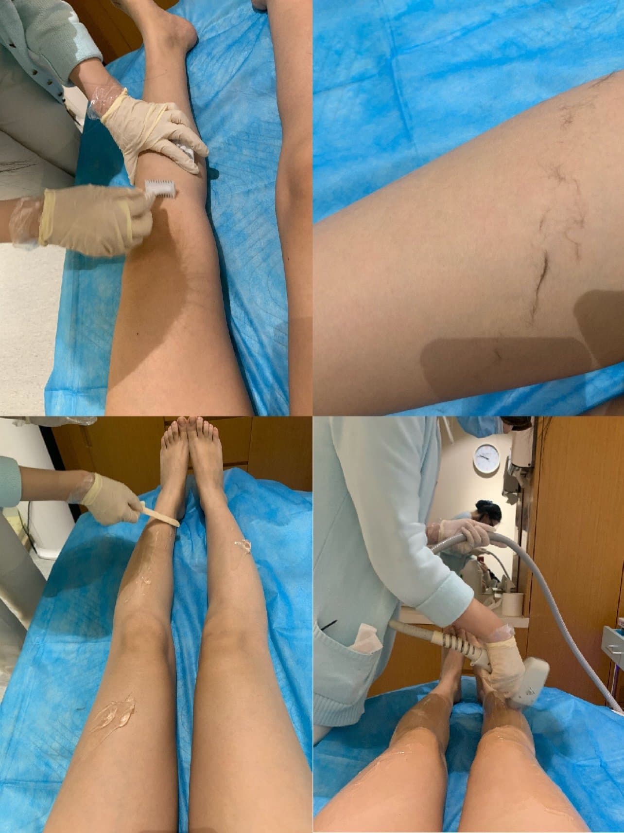 1. 护士小姐姐先用刮刀把腿部的毛刮掉。因为我事先不太了解流程,皮肤有点干燥,有刺刺的感觉。护士说:“前一天涂抹身体乳滋润一下皮肤,更好一点。”我的毛平时看起来比较细软,还是刮下来一大堆呢!