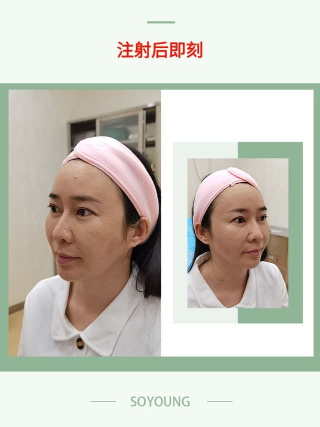 💎体验效果:注射完后即时马上看到皮肤充盈的效果,因为面颊凹陷产生的下颌缘松垂感也得到了很好的改善,皮肤表面未看到明显的针孔,也没有青紫的痕迹,就是稍微有点红,加上注射区域的皮肤有点痒,咨询了主任说是正常现象,拿了冰块让冰敷10分钟。离开医院前护士详细跟我说了注射后的注意事项,并提供了一张印刷好的小卡片,全程都很温柔细心。