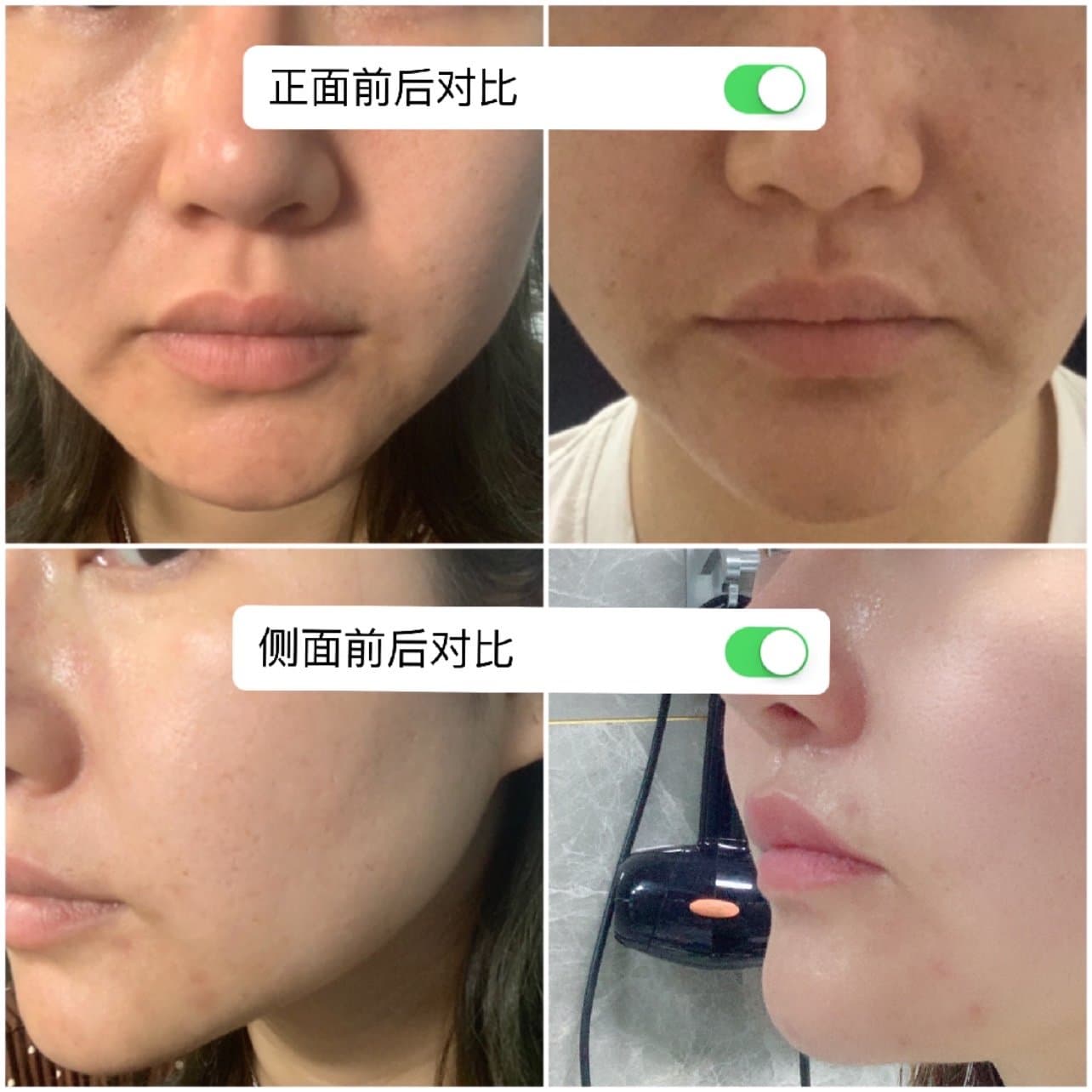 图片有我前后对比,从侧面看很明显的能看出下嘴唇和下巴之间有个窝窝了!