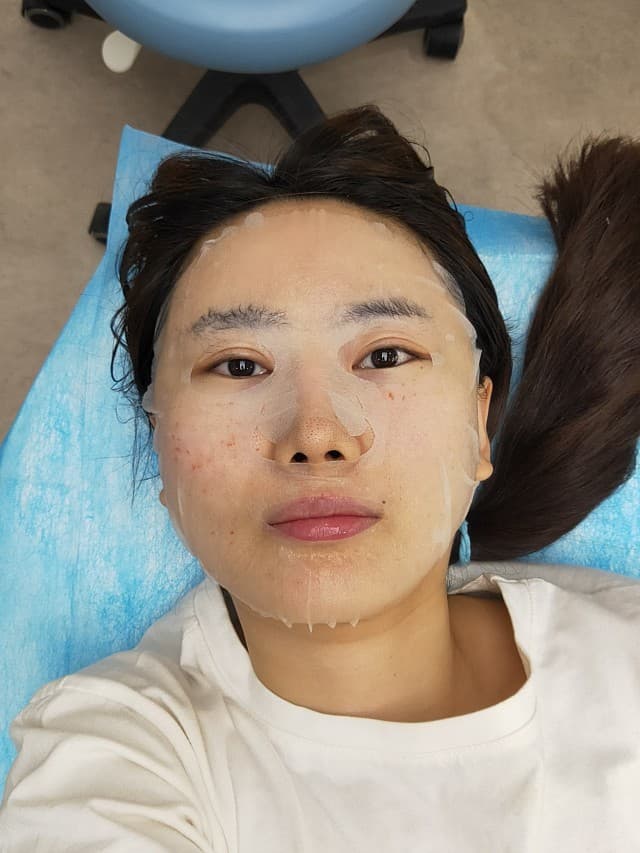 💜医生手法挺不错的,所以我打针过程出血并不多。然后就开始敷面膜啦,是医院提供的,很贴心的呦~😝😝😝