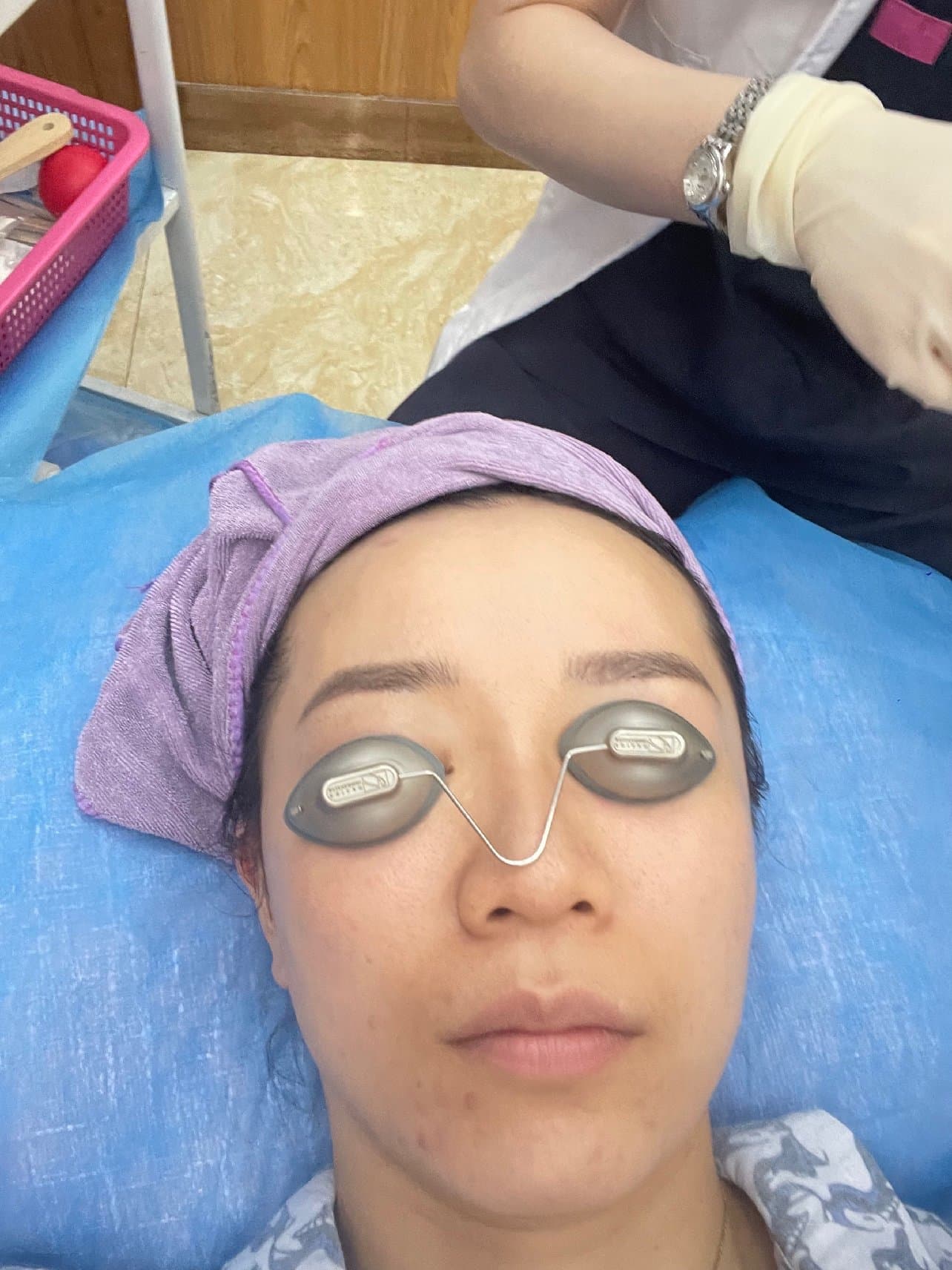 [:164]项目体验过程:整个过程持续30分钟左右,全程会把眼睛蒙上,皮肤会有微热的感觉,后期会有点热到刺痛,但完全可以忍受。医生会半边脸半边脸操作,可以实时对比效果,即时效果跟fotona4d很像,当时就可以看到纹路变浅,肌肉走势向上。体验过程无太强痛感,也没有恢复期,效果可持续3个月,是非常棒的抗衰新选择。