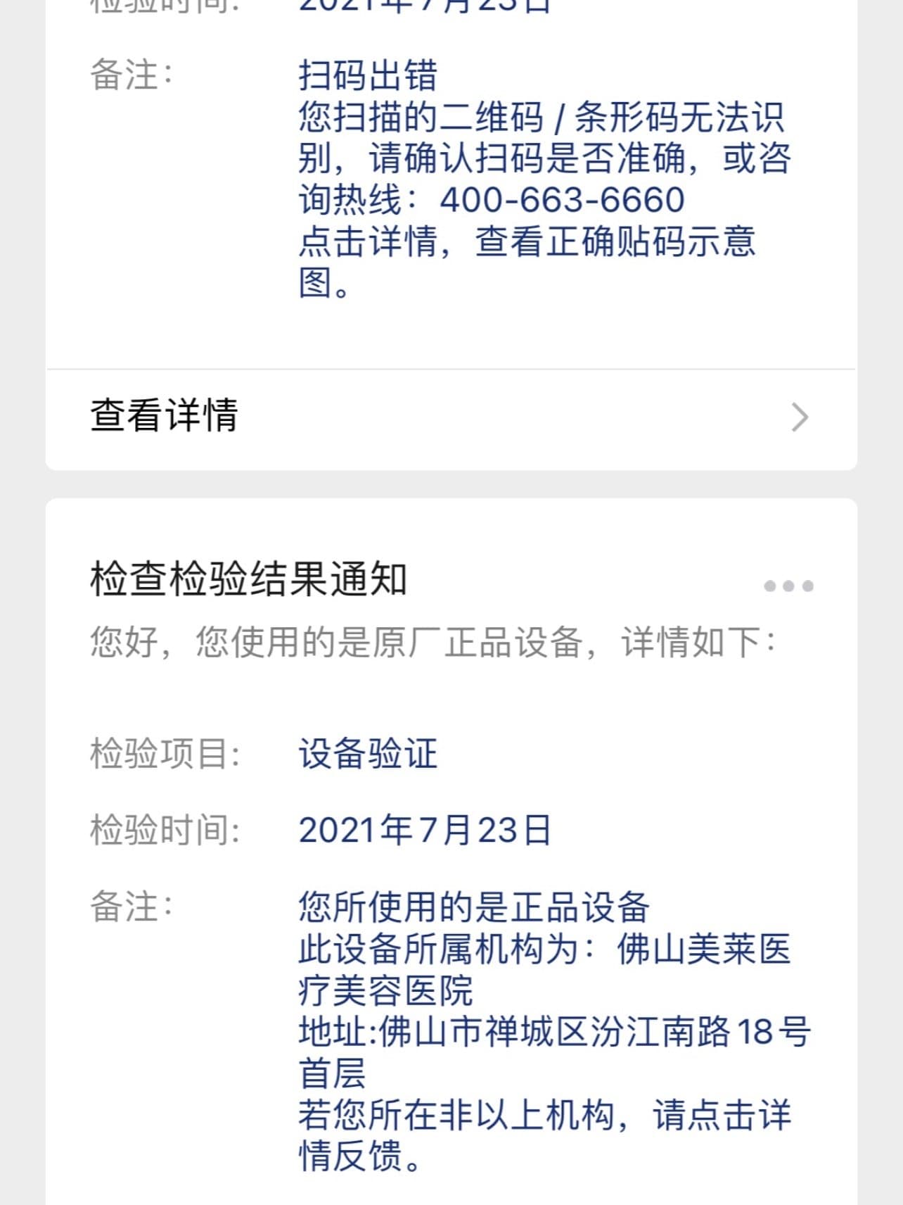 ✅通过官方查询,知道美莱是佛山其中一家拥有官方认证热玛吉机器及医生的店,毫不犹豫地选择了美莱,做医美最担心的是花了钱,而被假机器和没有资质的医生忽悠了