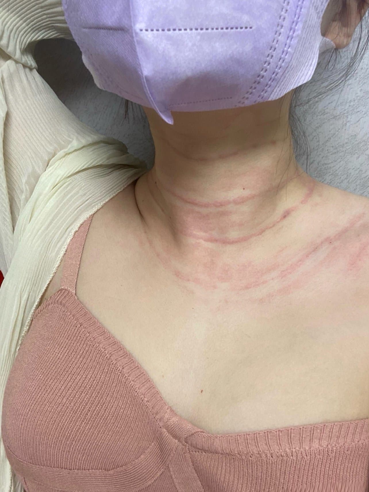 打完脖子都红肿了一圈。