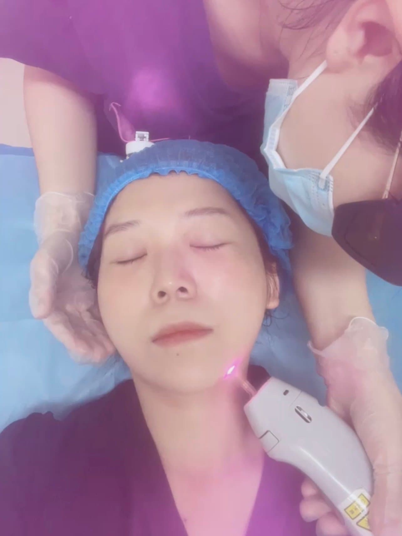 💎我来的这天是周六,虽然下着雨🌧️但是人还是很多,不仅有爱美的小姐姐小哥哥🧚♀️还有妈妈👩带着小女儿来治疗脸上的痣,等了一会以后就有护士带我去洁面,因为今天还要坐5Gmax的一个溶脂的功能,据说比较疼,所以还给我的下颌部位敷了麻药。