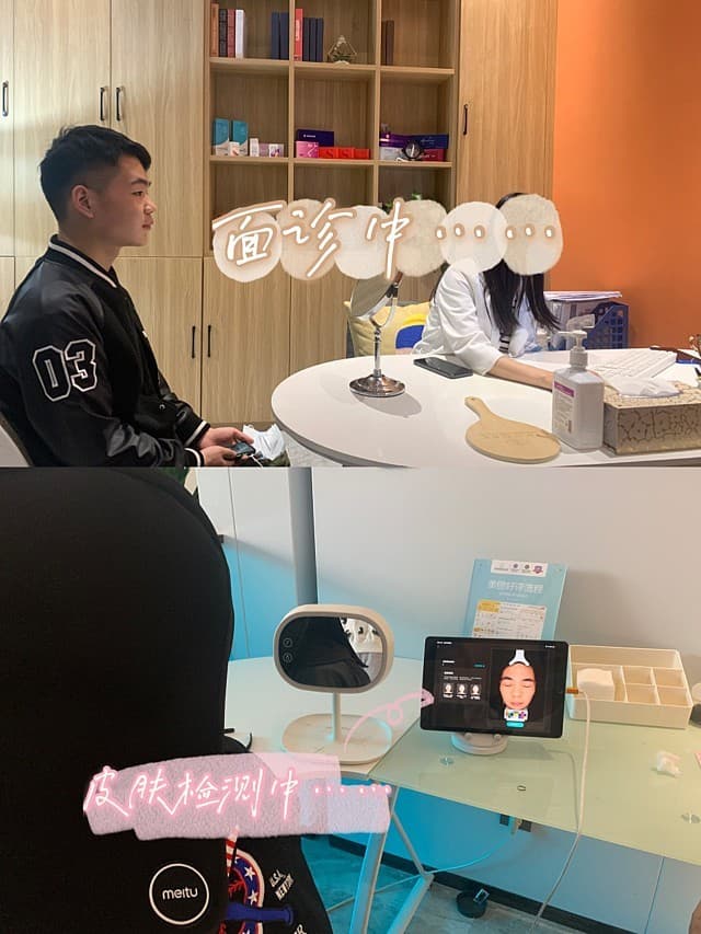 先是进行了面诊收获了很多干货,然后又带着我去做了皮肤测试,帮我做的小姐姐非常负责任讲了很多我的皮肤问题和怎么改善,又填写了一些基本信息之后,等了一会儿护士小姐姐带我去注射间,对我的脸部进行了消毒,然后就开始敷麻药面膜了〈第一次听说麻药面膜涨见识咯〉✌ 大概敷了有40分钟吧就见效果了,嘴的周围麻麻的,护士让我验好药之后主任就来亲自上手为我注射了,不得不说手法真的很好,根本感觉不到什么疼痛 🌝 主任在做的过程中还问我疼不疼,太贴心了🙊 做了大概有15分钟左右就已经注射好了,然后护士清洁了我脸部之后又敷了一贴富勒烯的面膜,然后就美美的结束啦 ✌