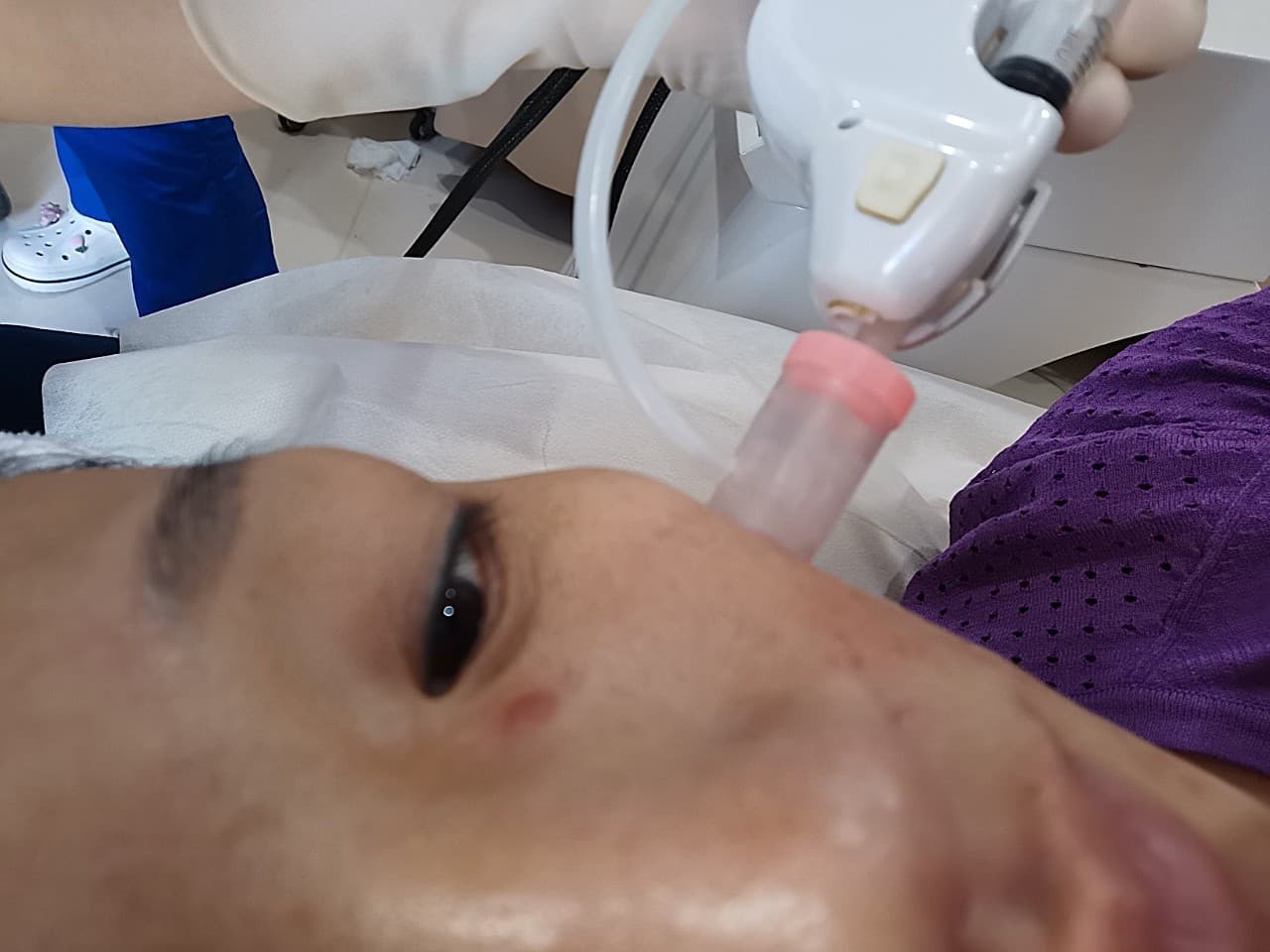 项目体验过程:首先是卸妆,然后我们的格格小姐姐亲自给我做的皮肤检测哦,这样可以对自己的皮肤有个直观的了解,也让医生也给我分析了皮肤状况,然后就开始敷麻药啦,冭活泡泡针大概是2.5ML的剂量,小姐姐又给我加了一点氨甲环酸,总共差不多3ML的样子。我用的是机器注射,不算太疼,不过打完也是有针眼会出一丢丢血,敷了一片医用面膜就会好很多啦,整个过程差不多用了一个小时。