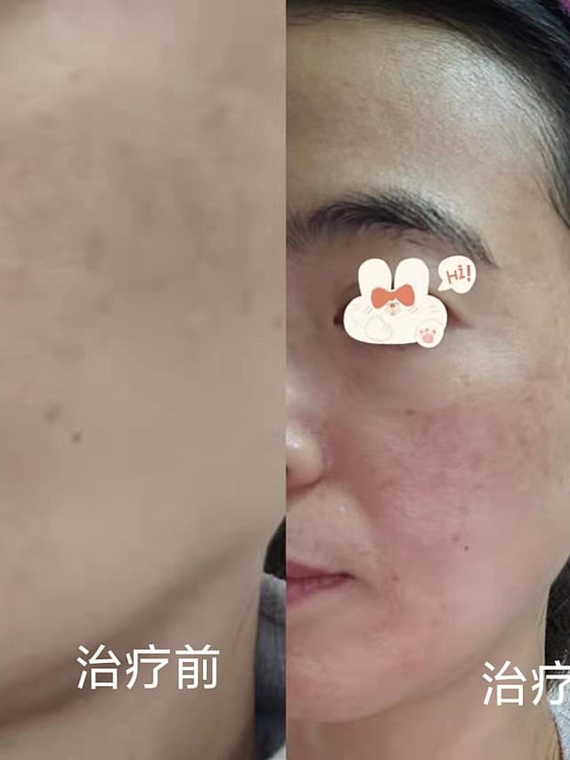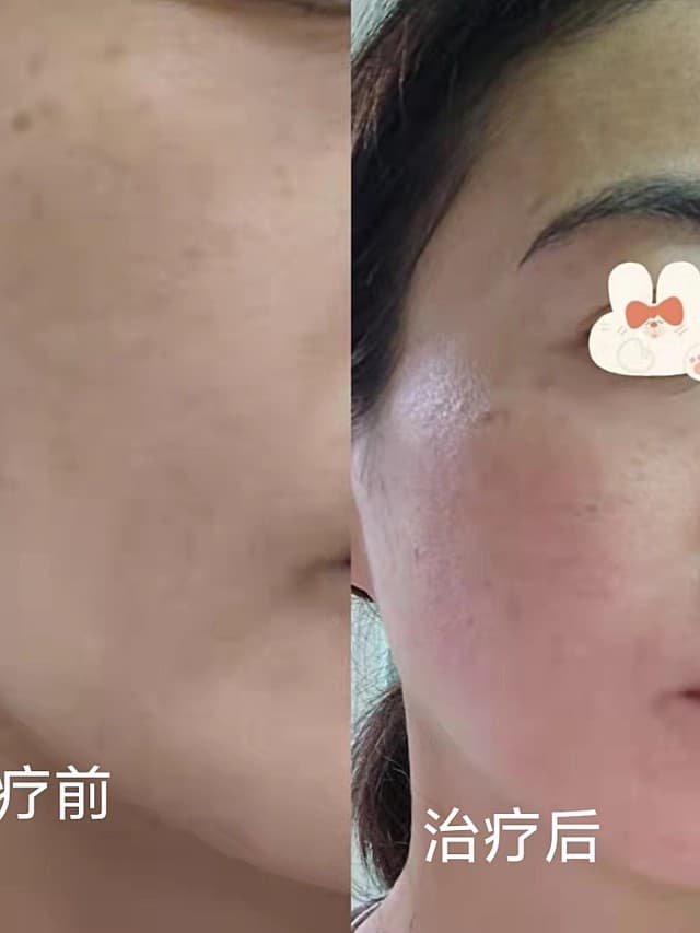[:162]体验后效果:1.做完后当时感觉皮肤变白了,高兴😊。2.当天晚上脸颊稍微有点儿红。3.治疗第一天,早上起来感觉皮肤比以前白了,斑点部位稍微有一点淡化,期待3天后的效果哈!😊