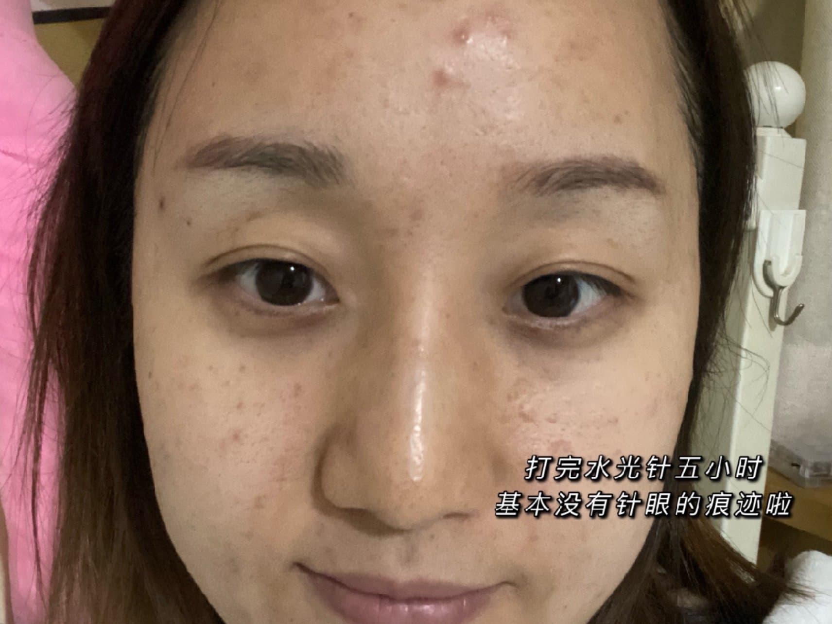 打完俩小时,针眼很明显,偶尔还有痛感,回家后我自己补了张面膜,晚上九点半就感觉没啥明显针眼了~