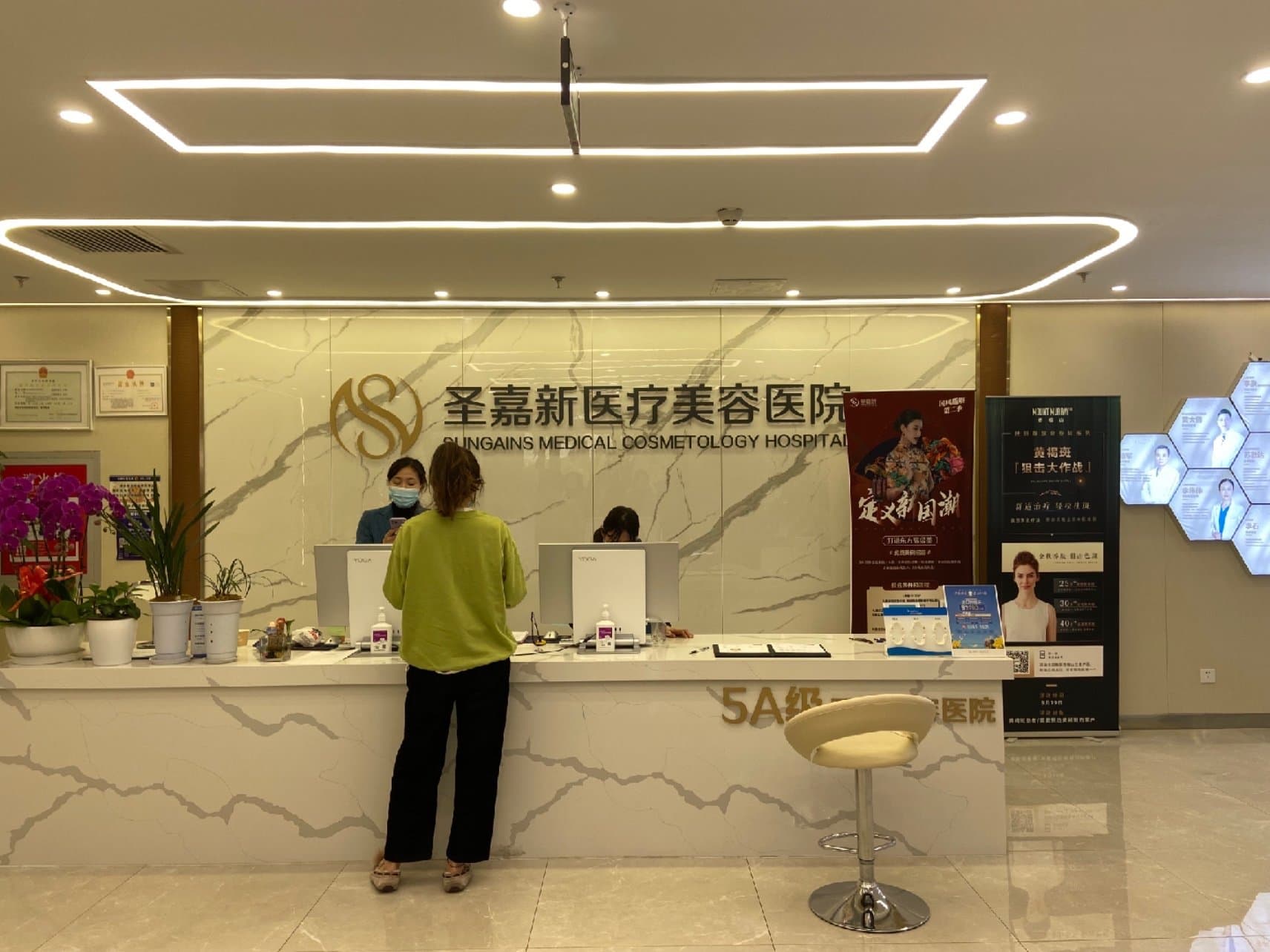 环境:整体也比较医美机构hhh,算是北京去过比较大的医美机构了,整个豪华的感觉,治疗室很多,大厅也有比较空旷的接待区
