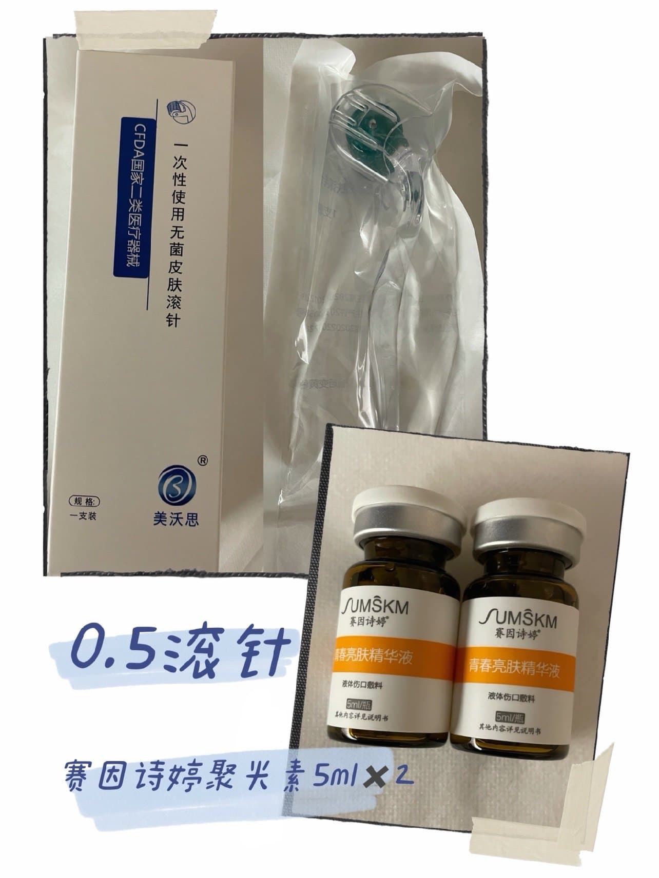 3⃣️手打完脸颊之后用0.5的滚针滚,相比手打,这个真的不痛。因为我长痘痘,所以小美女使劲的在痘痘那滚了滚,我毛孔大,所以也使劲滚了滚。边打边涂聚光素。