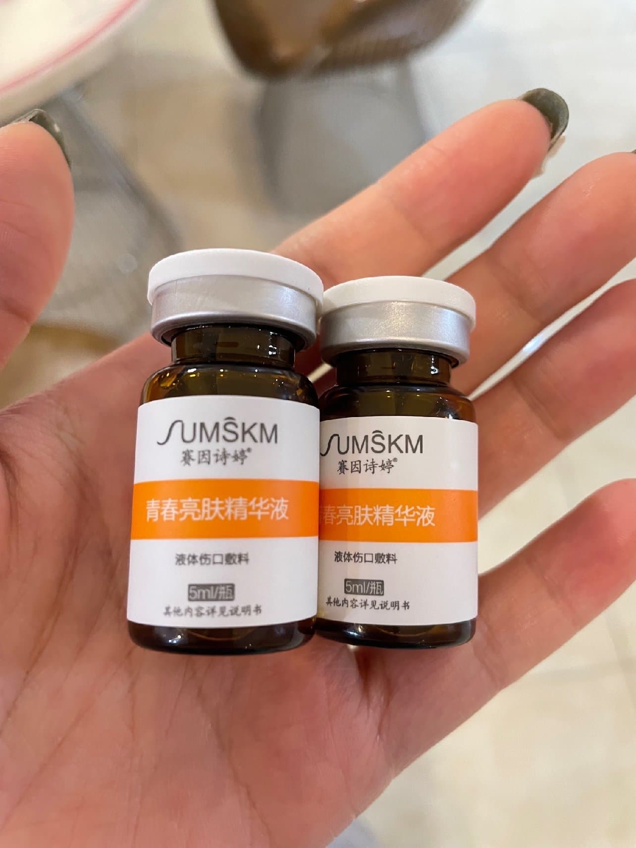 🍀赛因诗婷聚光素一瓶5ml,体验是两瓶10ml,之后客服和医院联系,也私信了新氧体验官,问题很快得到了解决,医院的工作人员喊我过去在产品上签字确认是10ml,还有一片配套的水晶面膜,医院是真的坑。