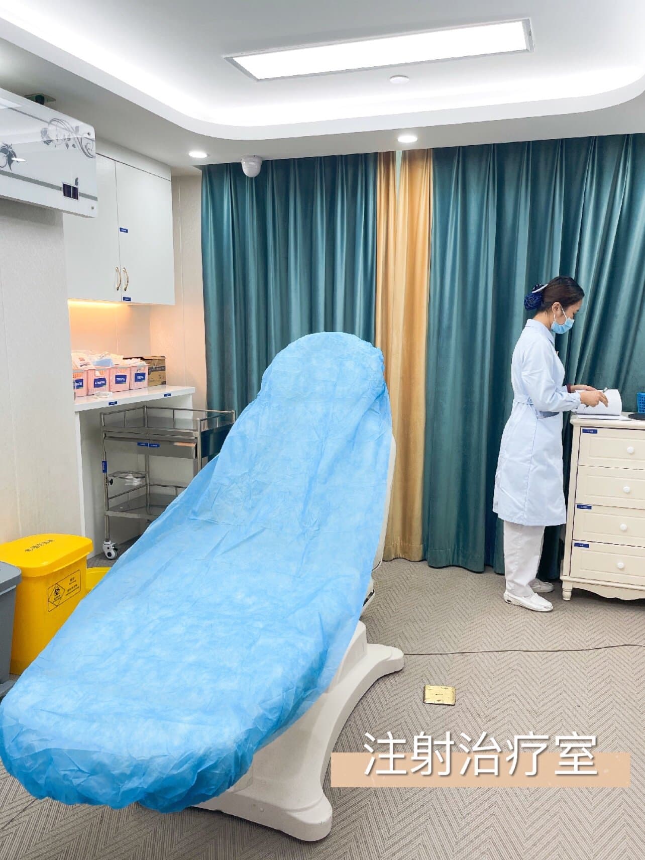 护士给我做了脸部清洁之后,很快就进入注射室啦😉注射瘦脸针的痛感几乎没有,所以不需要敷麻药,做好术前消毒就可以了