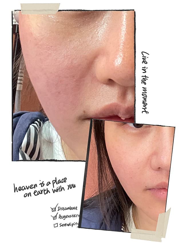 刚做完,脸上有一点轻微的红,并没有看到有提拉紧致的效果,法令纹也还是老样子