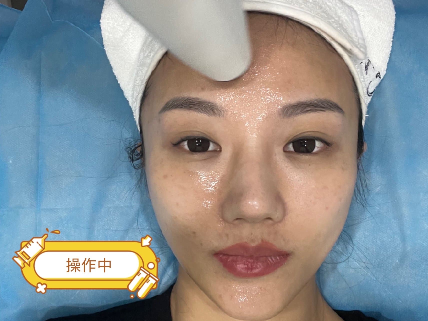 [:164]项目体验过程:狂塑之星还是第一次了解,属于保养类射频项目,需要长期按疗程做,一个月三次左右,不需要敷麻,我没有化妆,简单的清洁一下脸部就开始做了,先是刷了薄薄的一层宝宝油,然后就开始上仪器了,小姐姐手法就是从下往上做提拉,仪器走过的地方当时是冰冰凉凉的,做完的地方会有点热热的感觉,全程无痛感,能量是作用于表皮的就还好,没有那么高能量也不会灼伤皮肤。