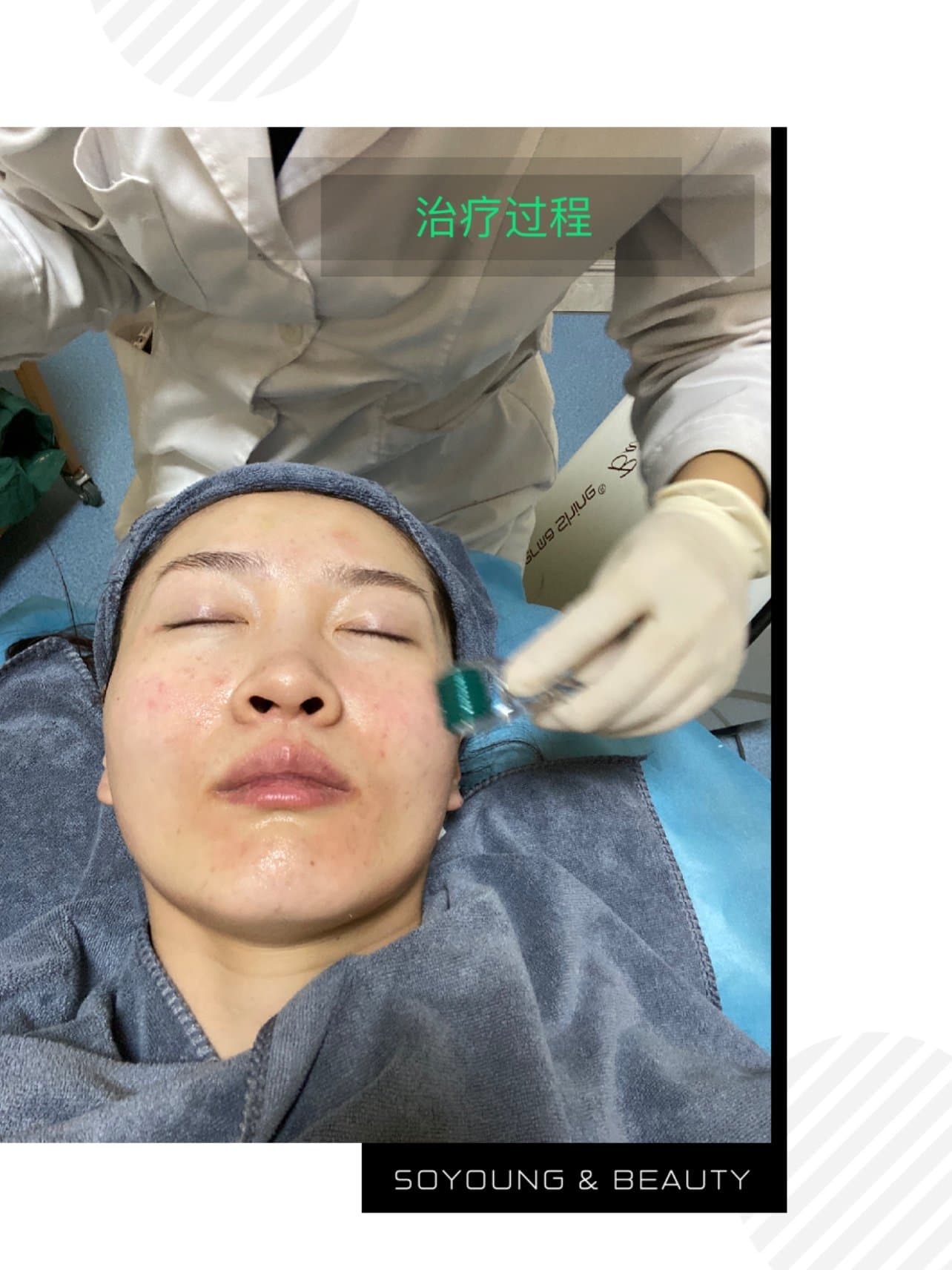 和普通微针类项目相似,先是清洁,敷麻药,然后开始微针治疗,值得一提的是,医生根据药品情况,采用了滚筒微针治疗的方式,这是因为,旖提丝动能素质地比较稀,不含透明质酸,所以比较适合微针方式治疗。治疗过程中皮肤较薄的地方会有微微刺痛感,其他地方是微微发热感,整个过程痛感不是很明显。