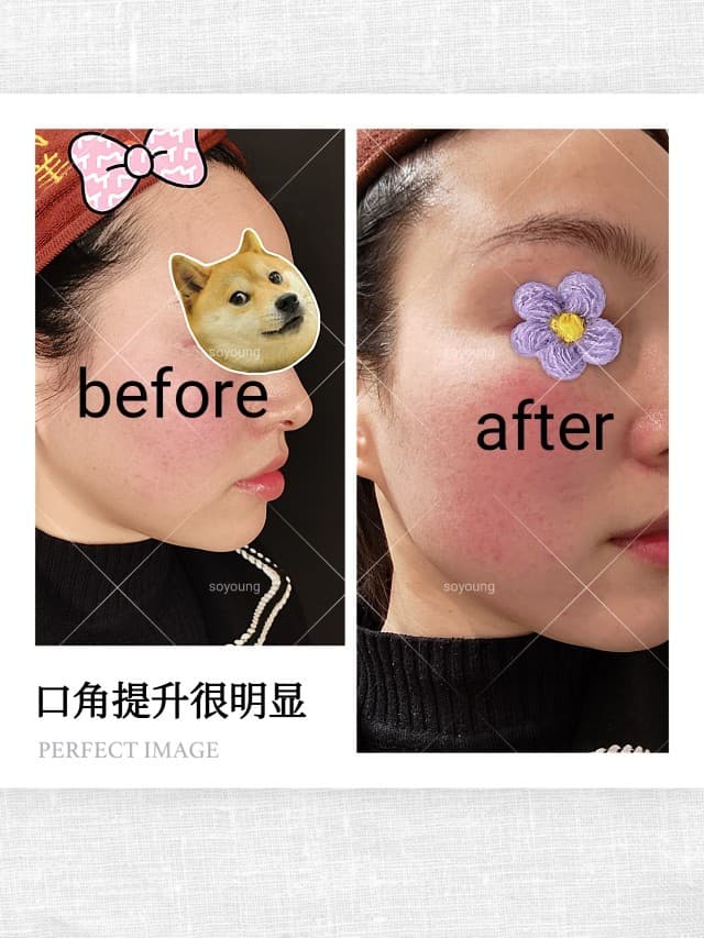 体验后效果:照片都是无美颜无滤镜拍摄,今天的皮肤状态不是很好,医院内部的暖气又开得特别大,闷热的环境下皮肤很干,发红。本来对射频类的仪器有些担心,但是操作完了以后除了有些发红发热也没有其他症状了,冰敷以后很快就缓解了。嘴角提升效果很明显,下颌线也清晰了一些,这还是一次的效果,如果多做几次效果肯定会更好