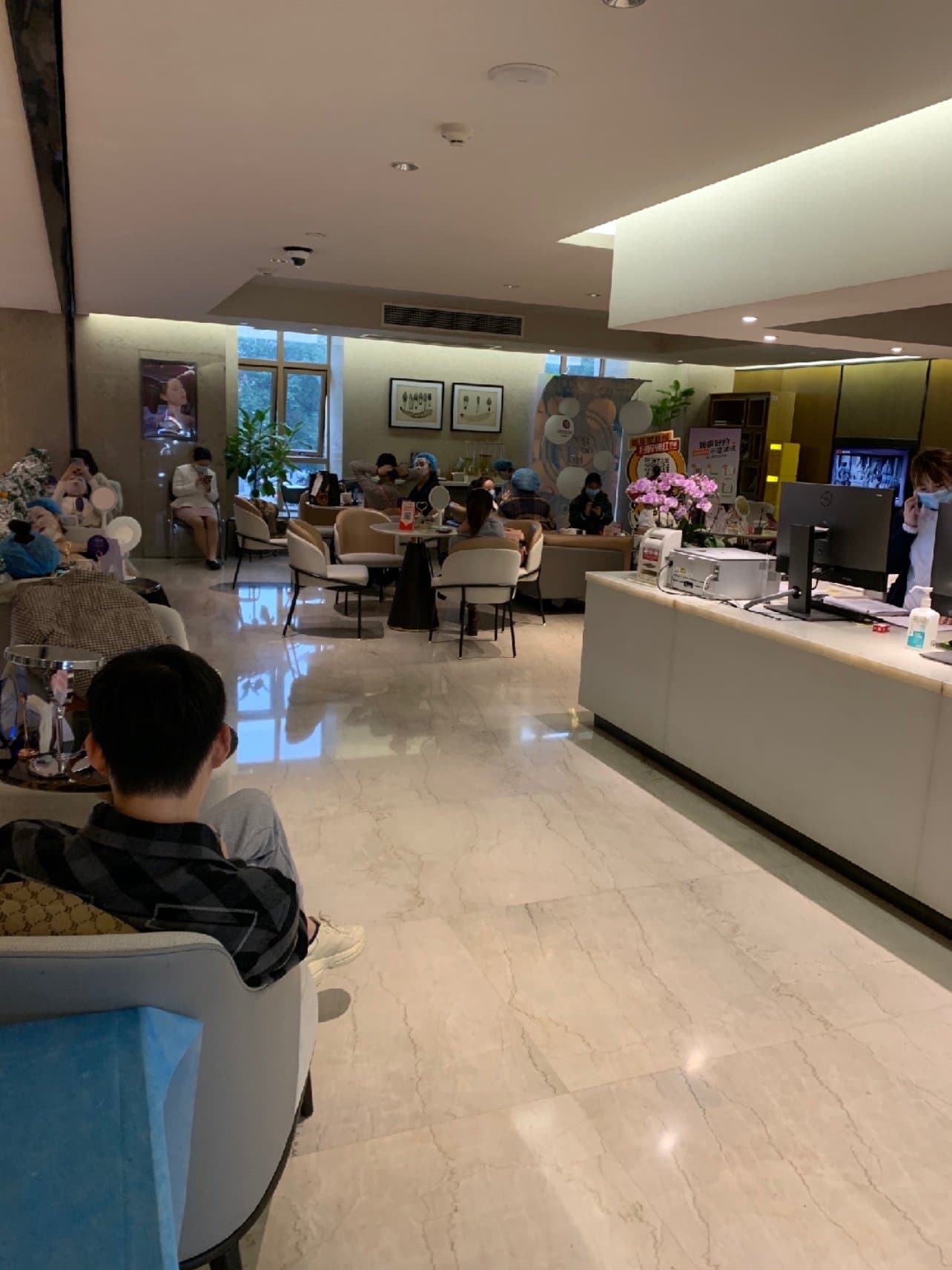 医院服务/环境:这是我第一次来米兰柏羽总院做治疗,之前只在高新米兰柏羽做过治疗。还没进医院就感受到了人之多,车都停到马路上了,幸好医院有专门负责停车的,不然要把人急死。进去之后前台登记电话,就去休息去等待,休息区的茶水饮料都不错,糖果小吃也可以,就是没有工作人员,需要自助。等咨询小姐姐帮我办理好资料就去二楼敷麻药,人也好多,医院生意太好了。