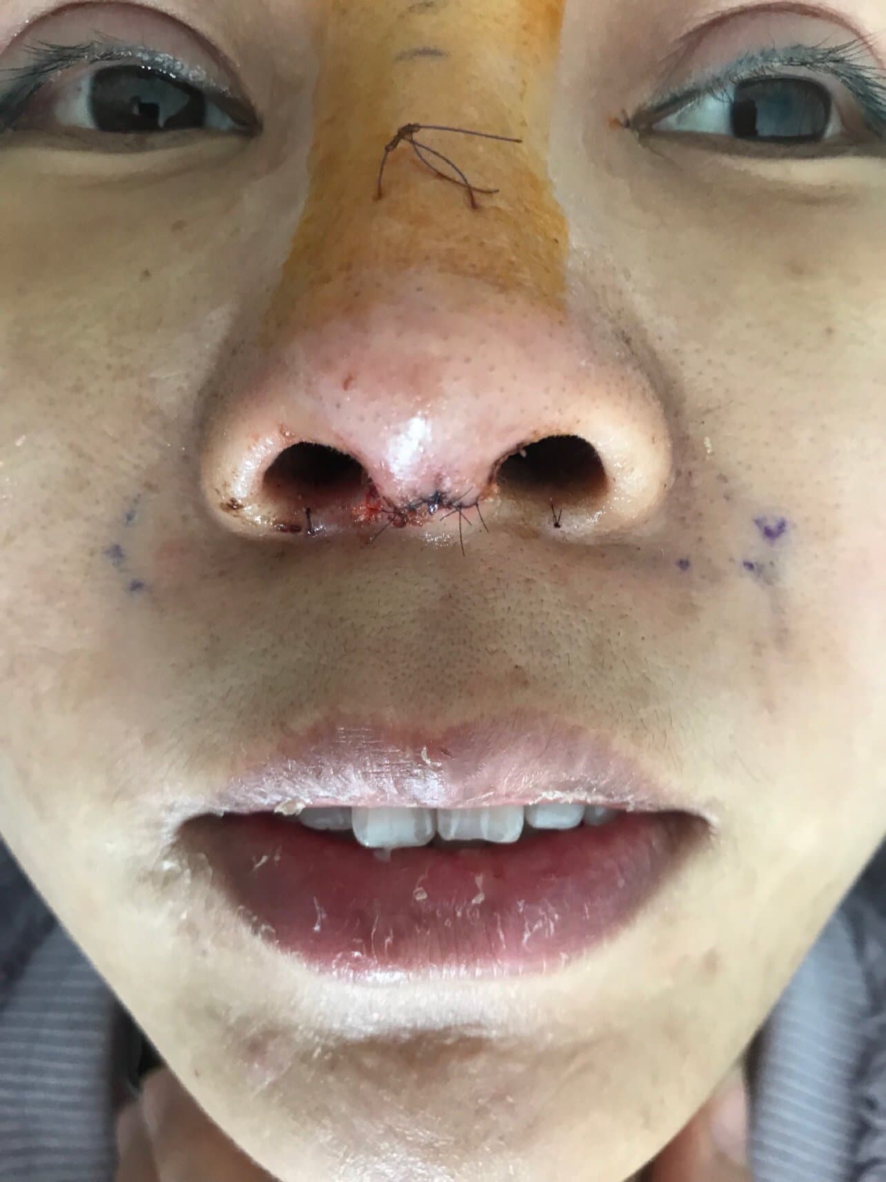 我的鼻子很塌,又有点朝天鼻,每每照一次镜子,都想改变我的鼻子,通过朋友介绍去了工作室打了玻尿酸,过了半年时间也不行,现在也不知道当时给我注射的是啥,后来看到美莱医院的广告我就过来看看了,设计师带我去面诊单喆医生,医生说想做的话要先把玻尿酸溶解掉才能做假体隆鼻,当天我就溶解掉了,预约好了时间我就过来做了手术,术后几天恢复得还不错,医院环境不错,住院期间每天早上有免费早餐,下午还有水果吃,服务也很好👍