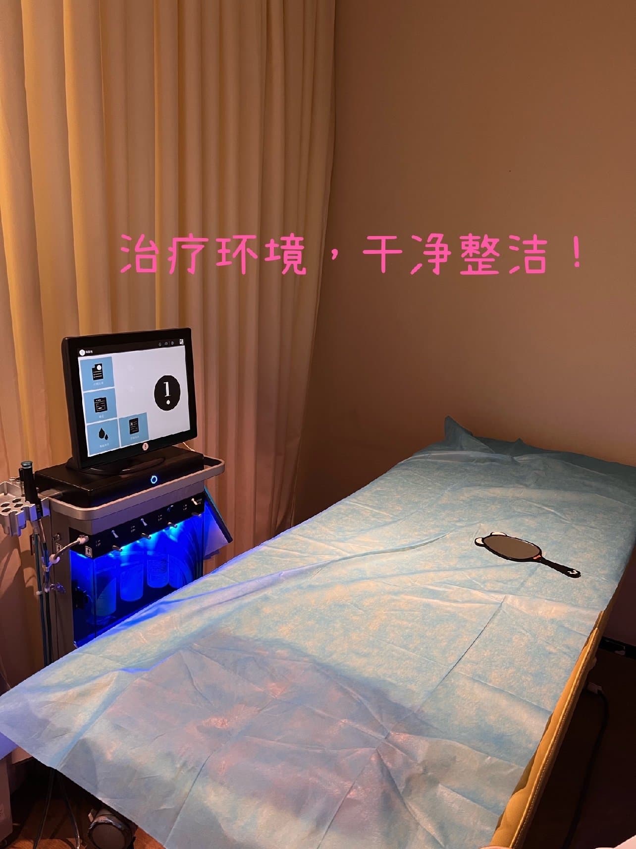 工作人员带我去了面诊室,专业的咨询师一对一为我讲解该项目的具体效果和注意事项,交代完毕之后,我去了二楼的就诊室外等待治疗。接着开始洗脸清洁,做皮肤检测。之后会出具一份专业的皮肤检测报告,接着会有皮肤科专业的医生为我分析我的皮肤情况,给我一些针对性的建议。好啦!马上就要进入到治疗阶段啦!我躺在床上后,医生先帮我清洁好皮肤,接着开始使用海菲秀仪器进行操作!