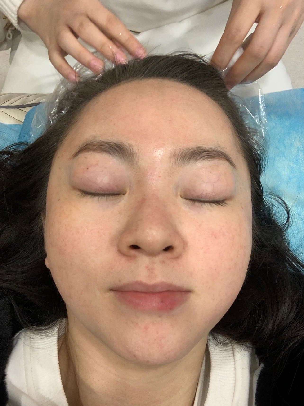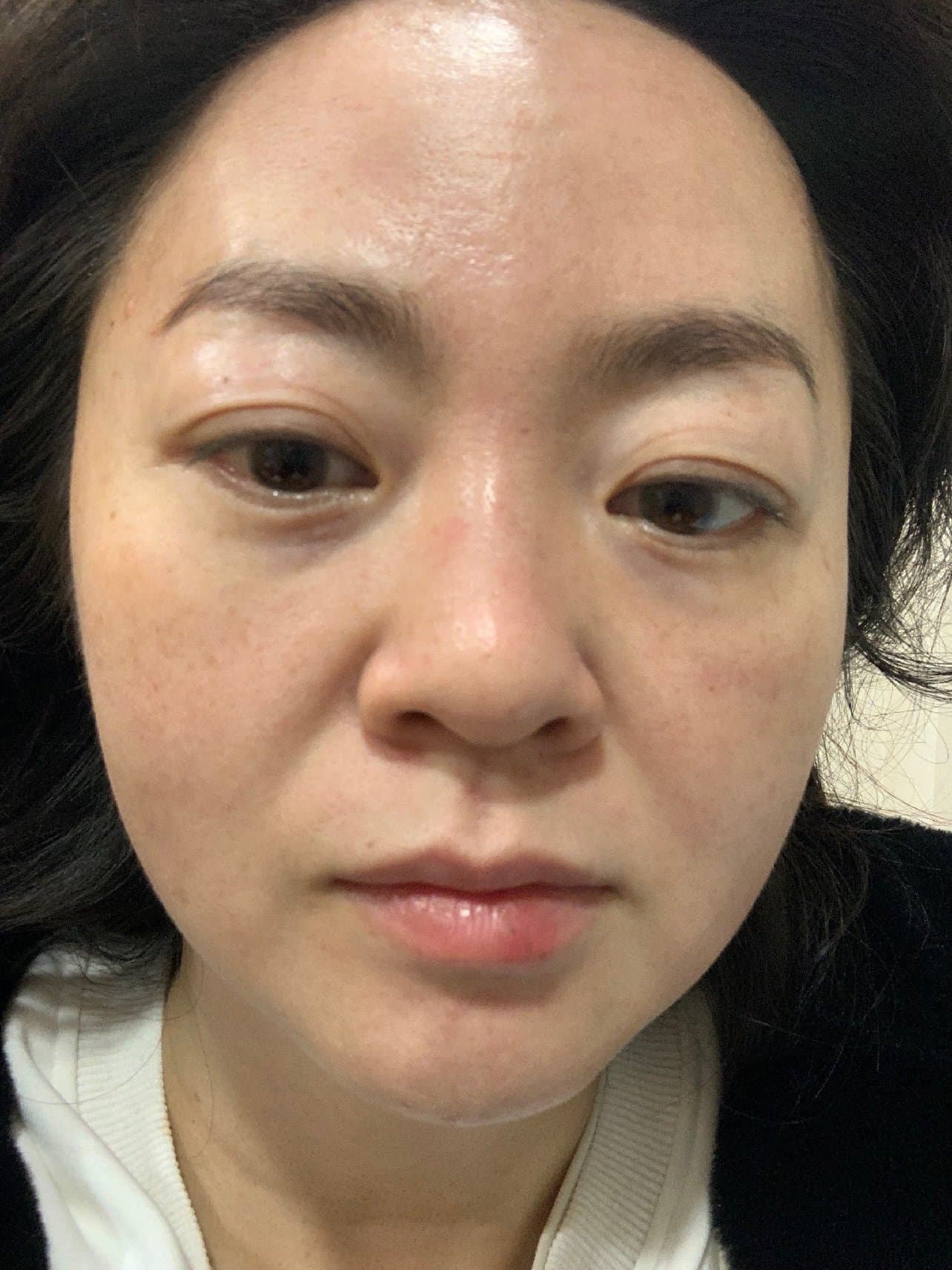 操作的时间不久,然后护士给了我两个冰块敷脸,一个保湿医用面膜带回家敷,三天后可以用正常洗脸护肤,我的脸上没有什么很明显的即时变化,照片是刚打完的时候的样子,有一点微微的发热,还有点泛红,没有怎么破皮,估计表层的斑有一点会结痂,期待效果