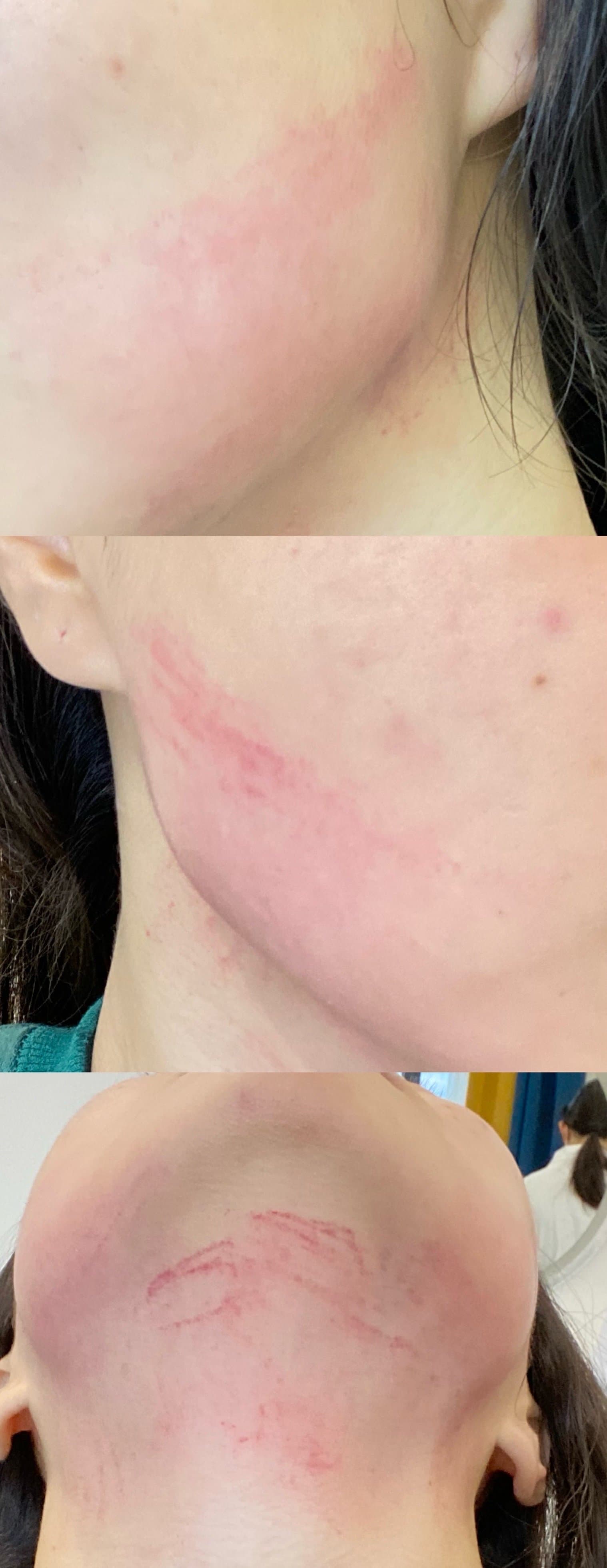 项目中:上楼先拍照,正面,45,90 。然后小姐姐就带我到治疗室。第一次中奖及第一次做这个项目整个过程我非常紧张,还好医生一直跟我聊天安抚我,没有麻药,如果姐妹家里有家用美容仪大概就跟那个三挡位差不多。不会很疼,有热感,但是效果是叠加的,所以后面会有感觉越来越热,可以跟医生说相对调整,但所有脸一定要同频率。治疗过程中我还手机放的音乐🎵(因为太紧张了手心都是汗哈哈哈)整个过程很细致,医生很贴心,因为双下巴比较明显还特意帮我重点处理。医生说做完即时的效果是百分之20,三天后根据代谢情况会越来越好。所以我们一起期待后续吧😚