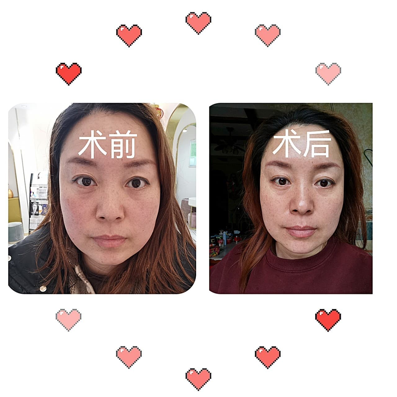 术后我也发了对比图,貌似感觉皮肤亮了一点,过几天再来发对比图