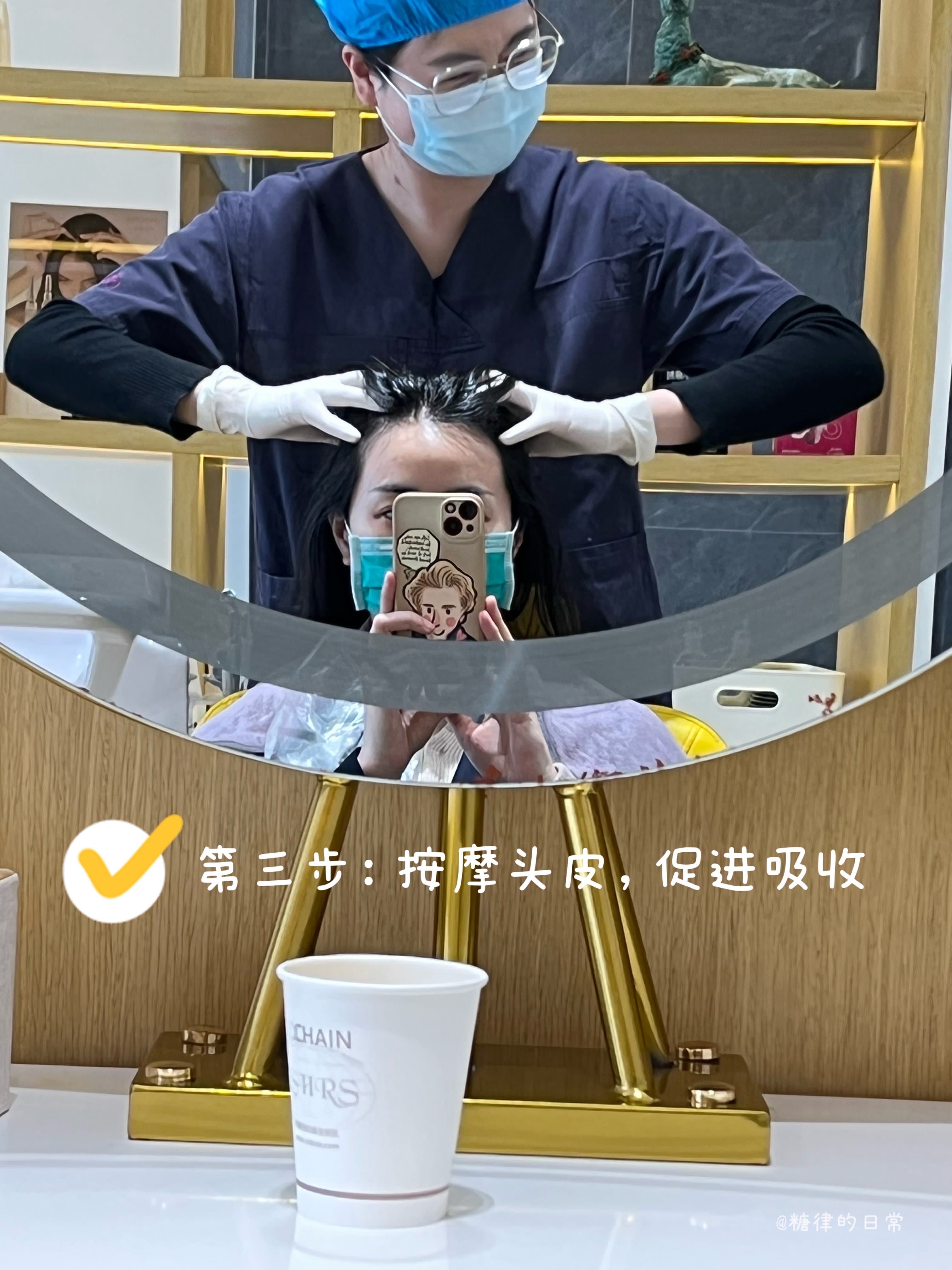 之后针对我的头皮状况,给我开始了今天的护理: