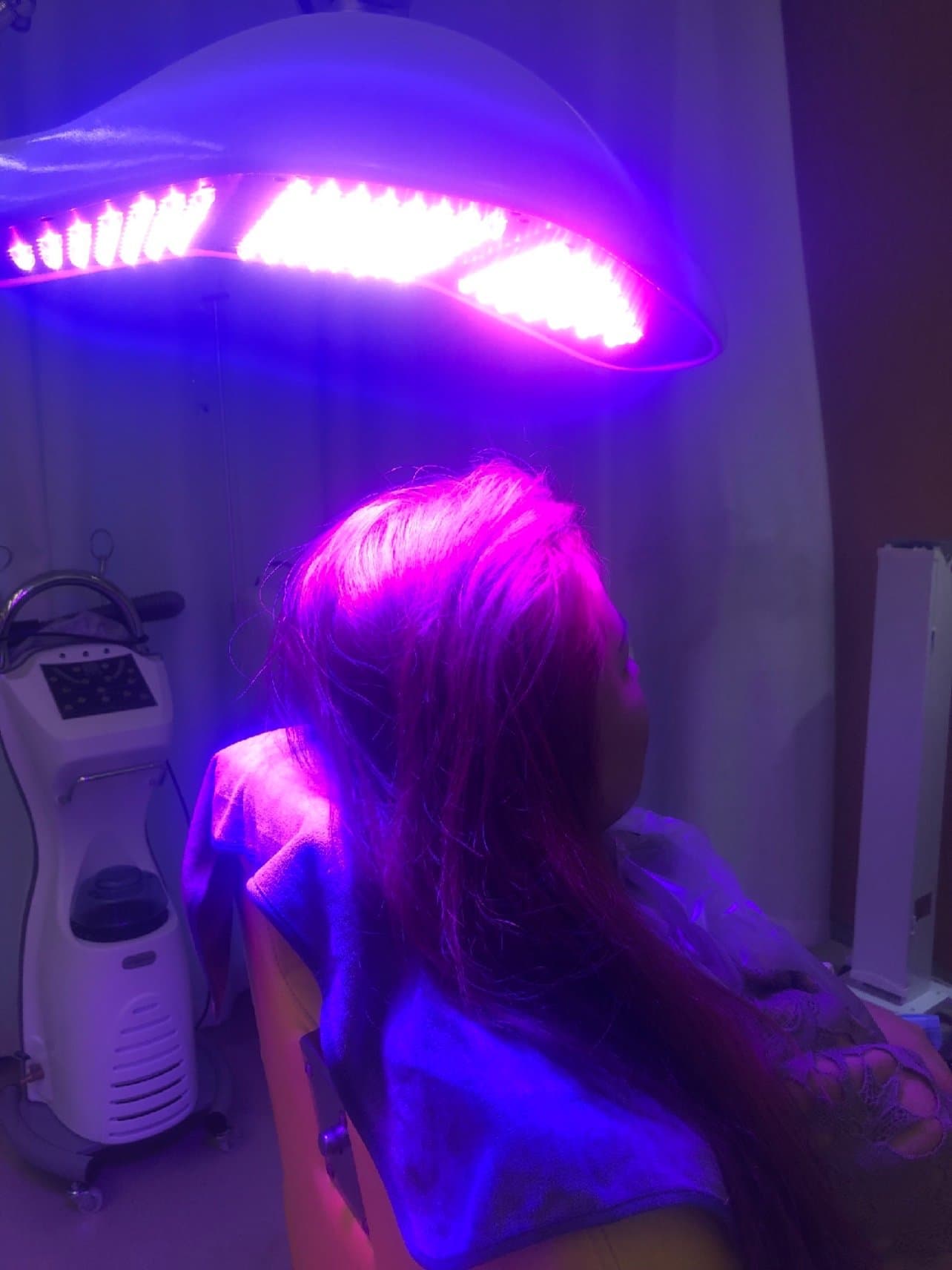 6)使用红蓝光照射15分钟,对头皮补