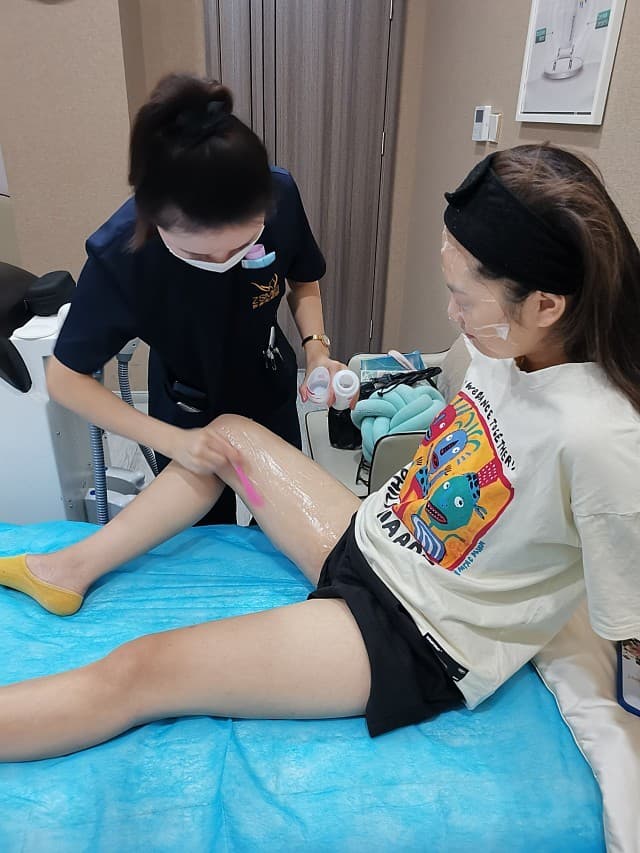 先用备皮刀刮干净毛发,然后涂抹凝胶,调整好仪器的参数就开打啦,有一点点温热,但是很舒服