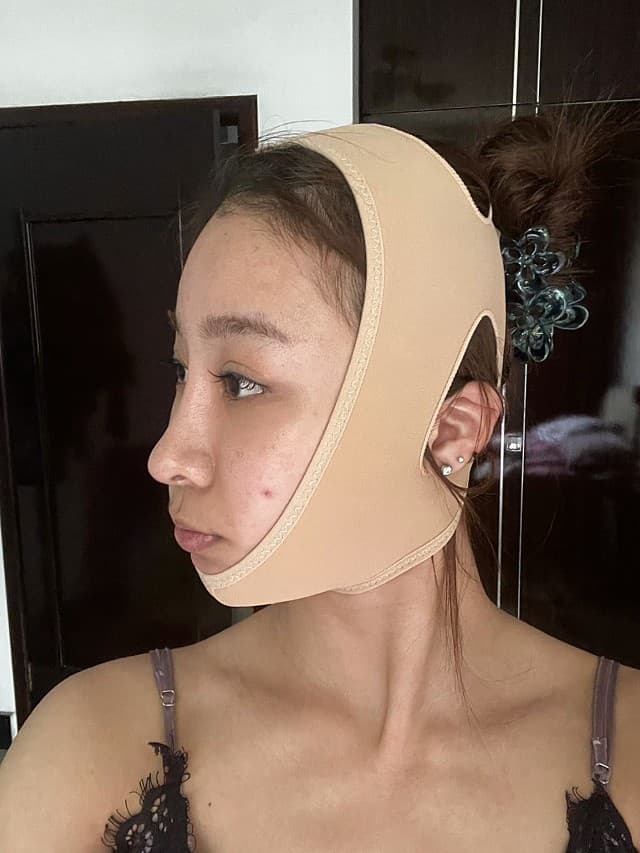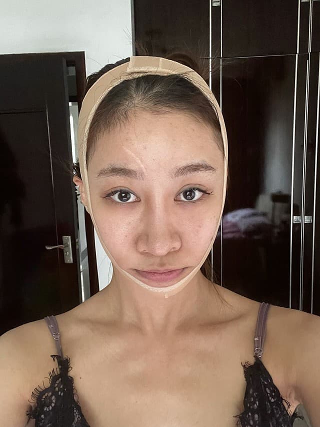 做完当天没觉得疼,可能还是麻醉的作用吧,和自己预料的一样,包的和猪头一样。术后担心肿胀消不下去,一直在坚持吃消炎药,到十来天,基本没什么肿胀了,脸上也没有之前那种紧绷的感觉了出门没太多问题,不过要全副武装,固定套要一直戴着,出门带帽子和口罩!不想别人看出来我做了手术的,哈哈哈!💜💜