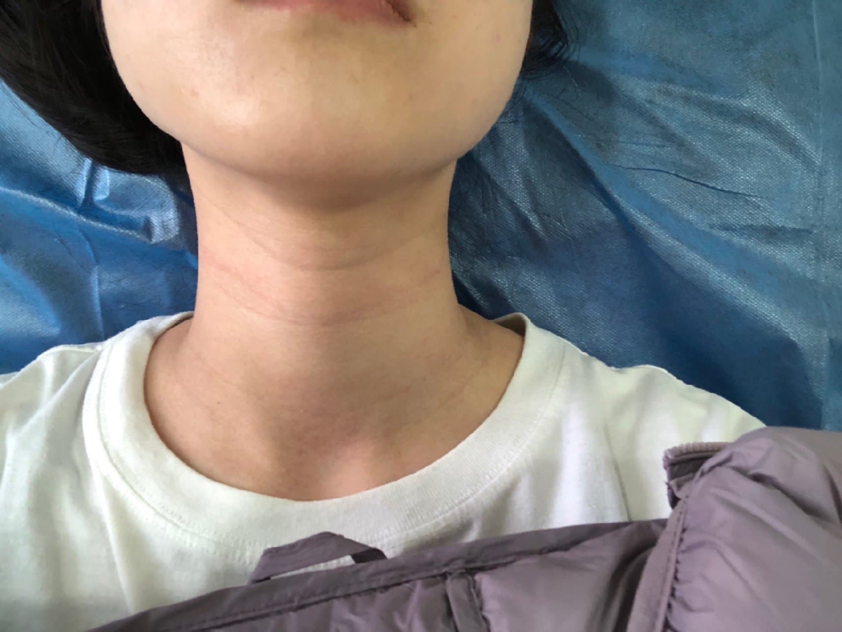 我的皮肤很容易泛红护士小姐姐很小心的帮我向医生反复确认是否能注射,很感谢。接下来就是清洁脖子和敷麻药整个过程花费约40分钟,注射过程也很流畅大概只花了不到15分钟的时间,医生的手法很娴熟,疼痛感有一点点🤏酥麻酥麻的,不痛。