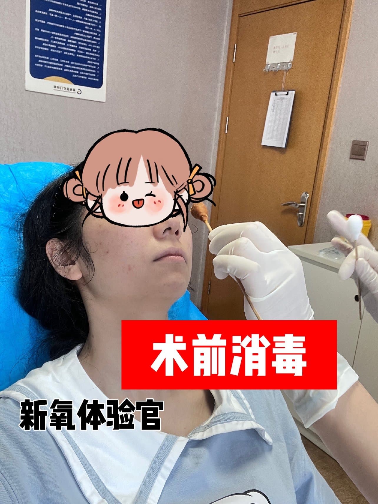 坐在那里之后医生会告诉我这个是不敷麻药的,但是注射剂里面的会有一定的麻药也不会特别痛,在操作台上护士会把这些准备工作都做好。