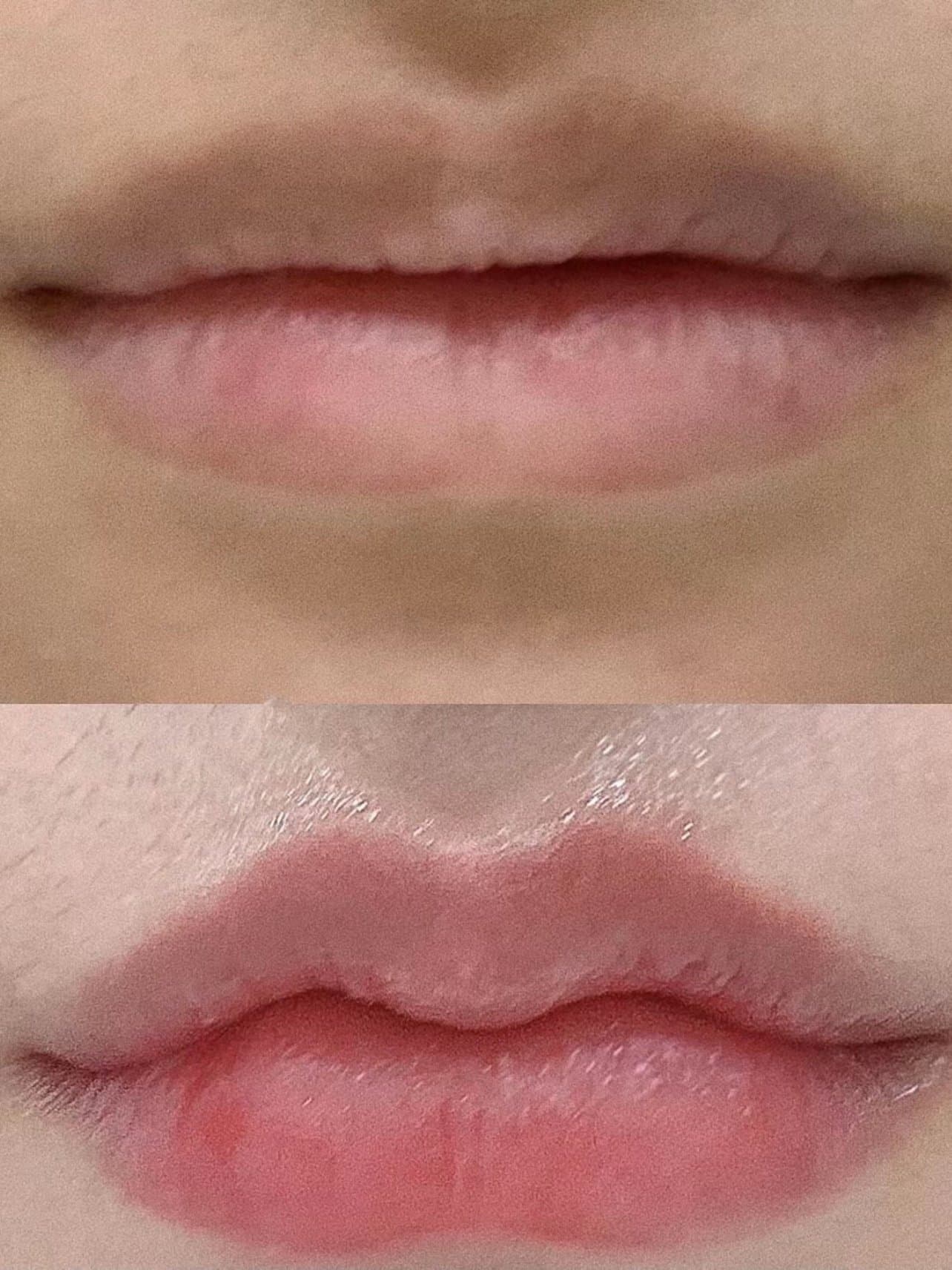 体验后效果:刚开始就一丢丢肿,感觉还不错,唇形已经开始展现出来了,后期要各种忌口就有一点麻烦