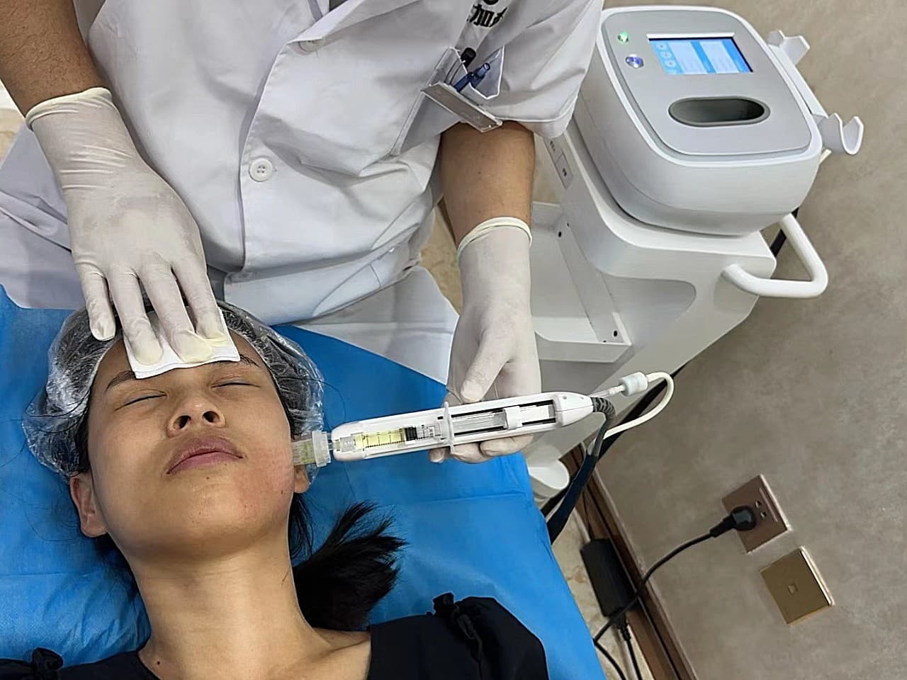 做之前给我拍了皮肤检测,也给我分析了我的皮肤状况,推荐我做黑金超光子 太活泡泡针,因为我的整体肤色比较暗黄,具说这个太活泡泡针还不错,也是第一次尝试。黑金光子做的时候是无痛的,做完后紧接着敷了麻药打水光,水光是他们这里的陈院长操作的,很细心。边打边告诉我皮肤护肤和防护的问题,还有作息问题,给陈院长点赞