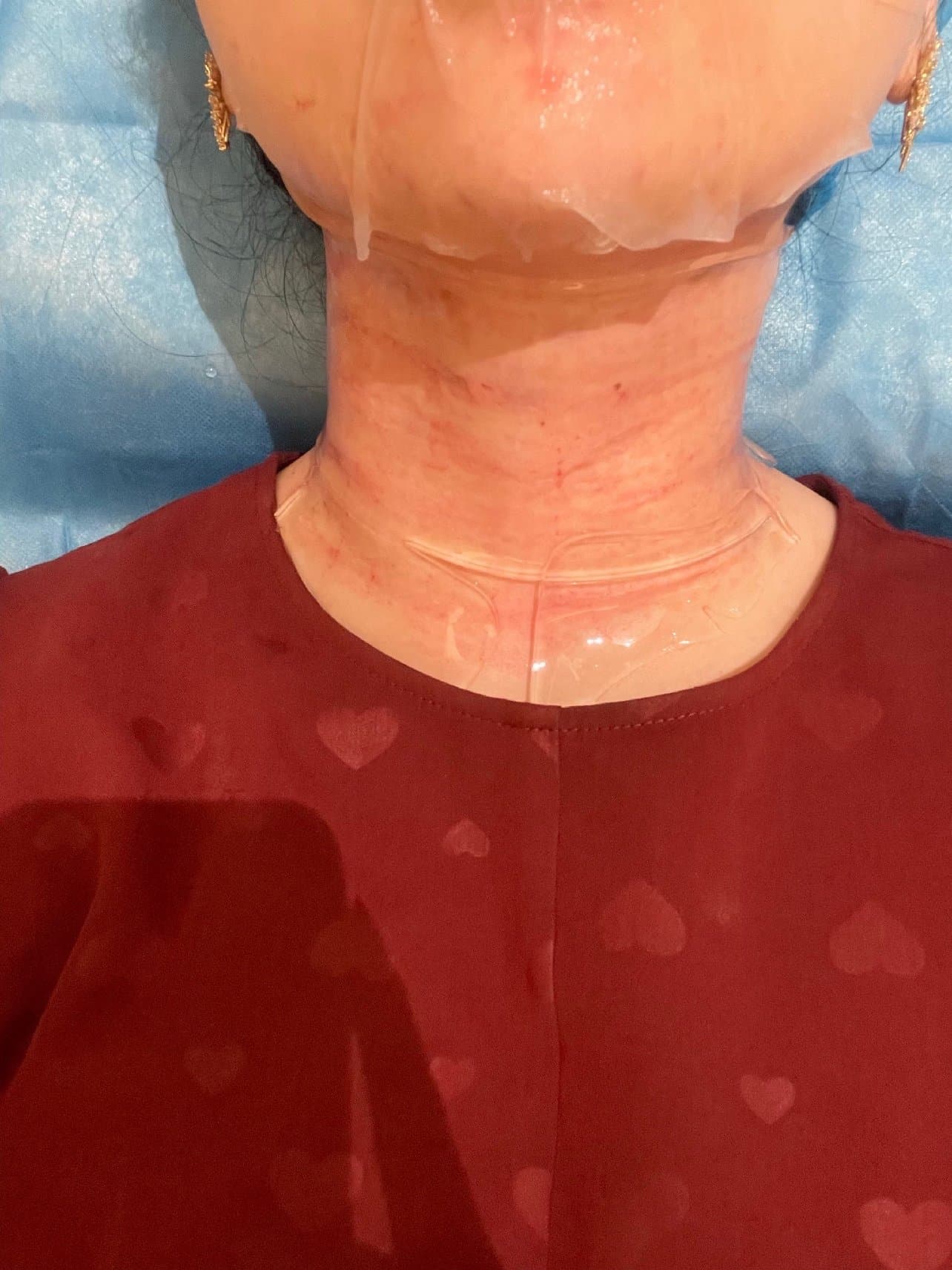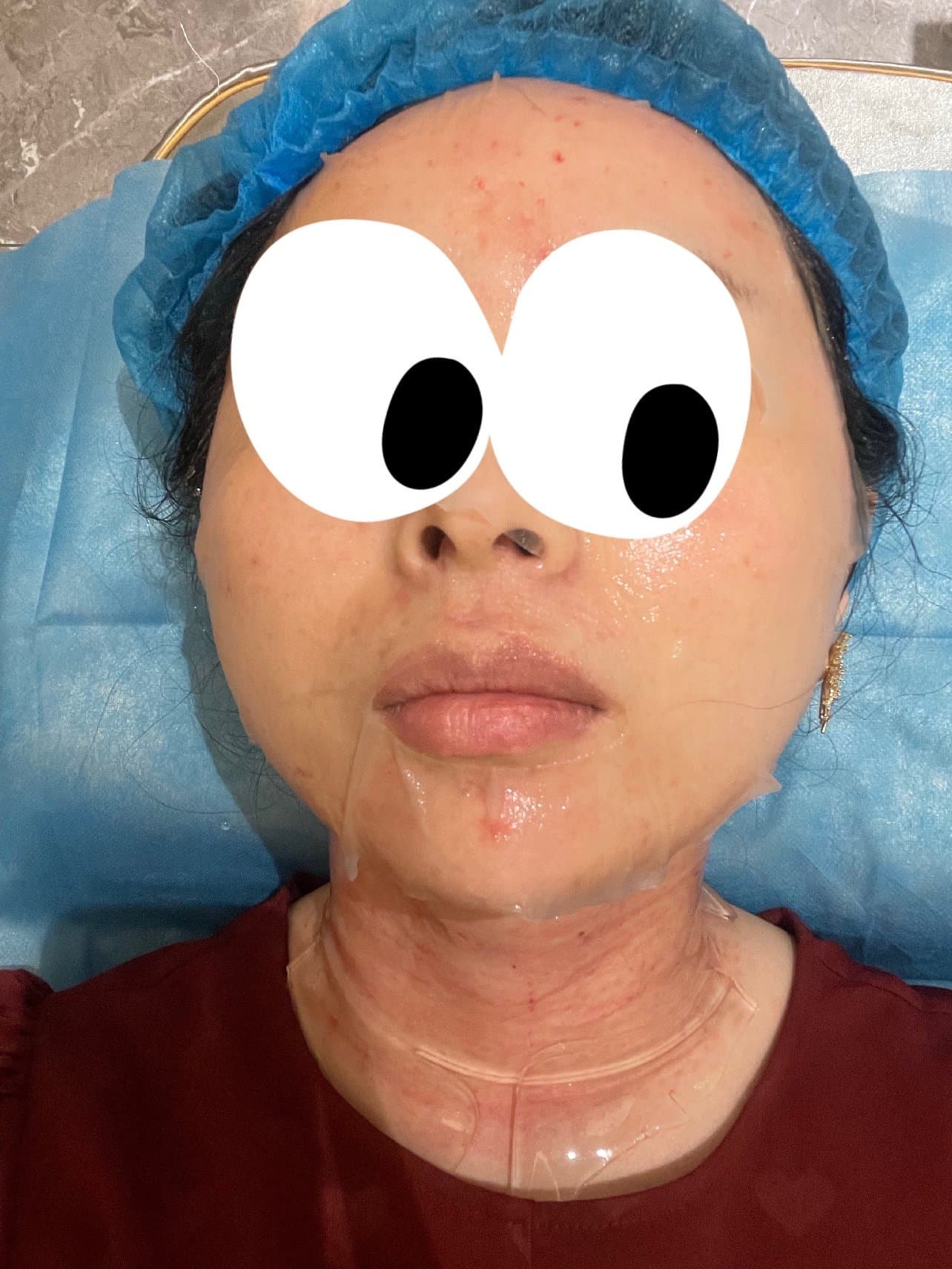 做完光子后就有专门的客服人员引领到休息室进行敷麻药,因为我是水光针和颈纹一起打,就全面部 颈部都敷麻药了。