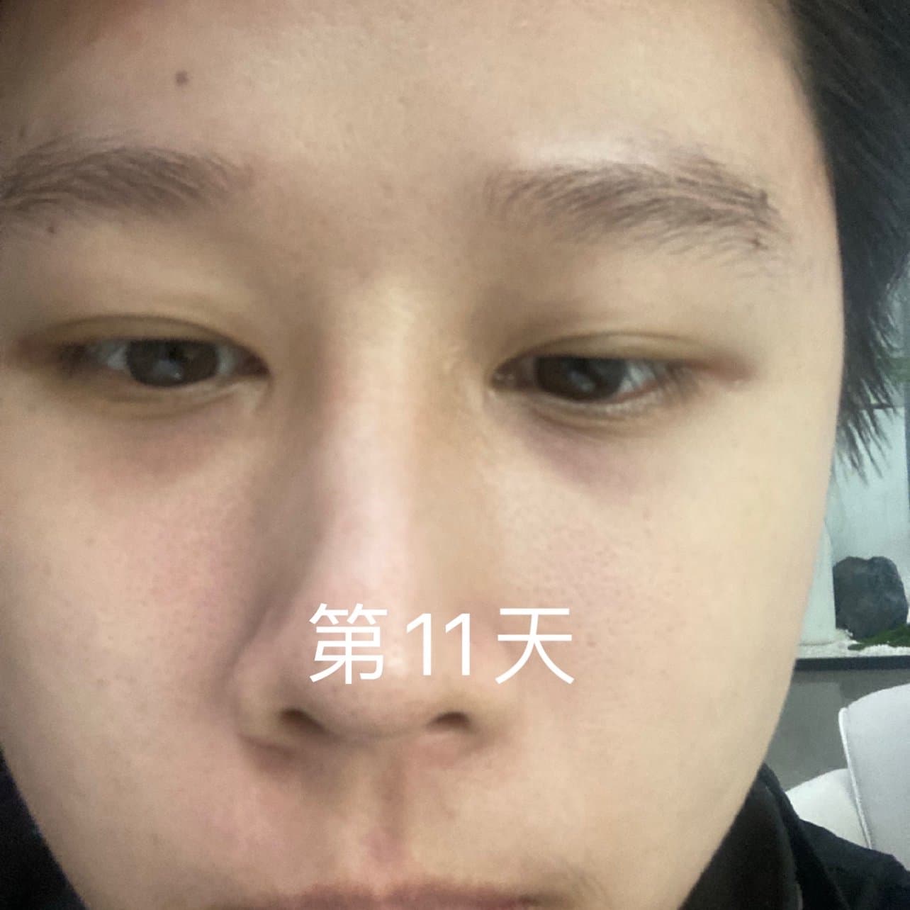 当天肿胀明显,前几天睡觉会流出很多分泌物,明显肿胀会持续一周左右,现在20天左右已经能看出来效果了,泪沟改善一半,摸着里面还是硬硬的